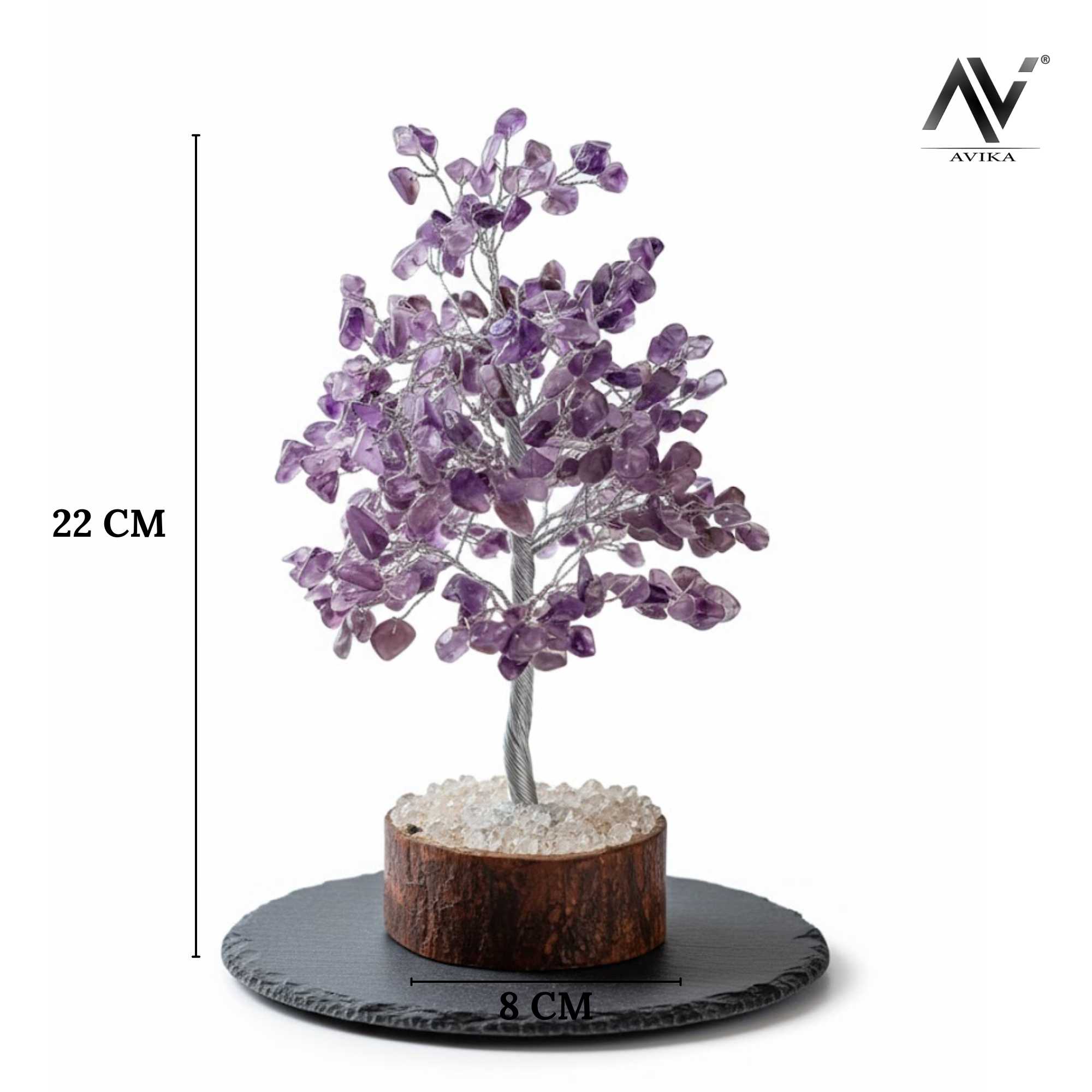 Amethyst is believed to balance emotions, enhance intuition, and create a serene environment wherever it’s placed. Every tree is individually handcrafted, ensuring a unique design that symbolizes harmony and beauty.