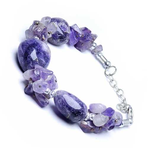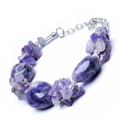Avika Amethyst Tumble Chip Bracelet (Pack of 1Pc) is considered as a bracelet of protection from self-deception, as well as a protection against external unforeseen forces. It further symbolizes piety, kindness, humility, sincerity and spiritual wisdom. Amethyst is an extremely powerful and protective stone with high spiritual vibrations. Exceptionally beneficial to the mind, amethyst will calm or stimulate, depending on which is needed. It is one of the most spiritual stones: Promotes love of the Divine, Brings about spiritual wisdom, Opens intuition and psychic gifts. Note: These are natural stones and only shape has been given. Please note that you will be sent a similar bracelet which is 100% natural. Availability may subject to in stock product.