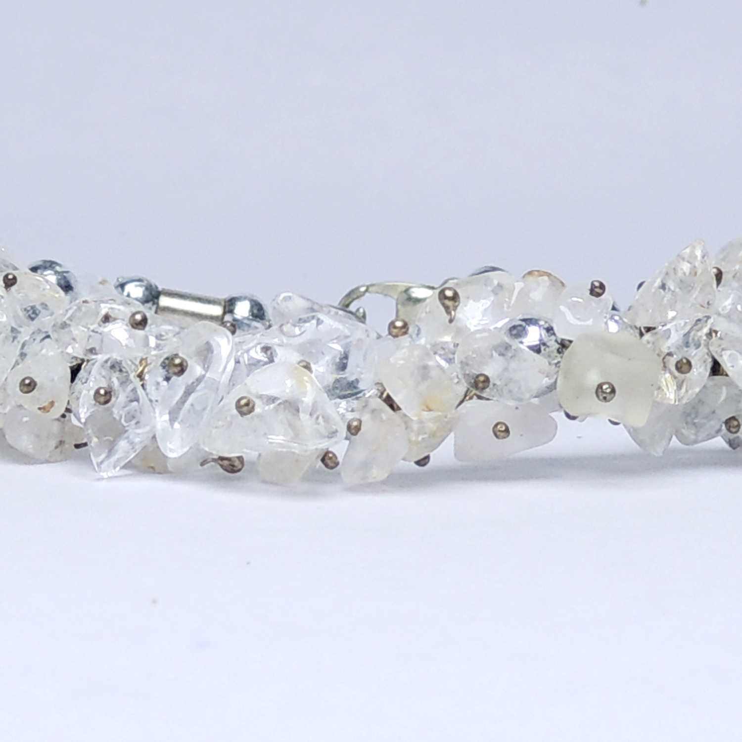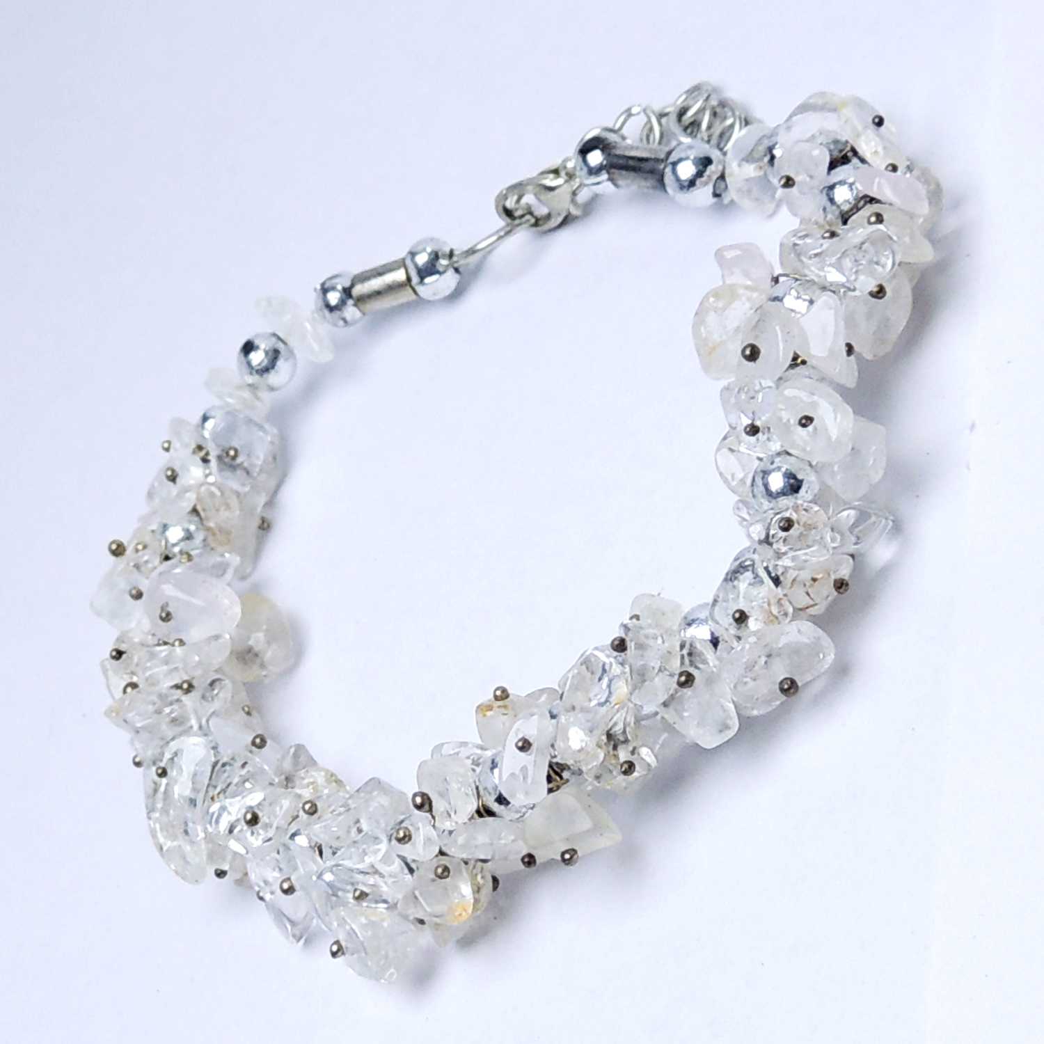 Avika Clear Quartz Chip Cluster Bracelet (Pack of 1Pc) is a beautiful Bracelet for you and your loved ones. This beautiful Clear Quartz is made from genuine quartz stones. It is a clear variety of quartz that was first found high in the frozen mountains of the Alps. It is said to have cooling powers and is a romantic stone. This cools of the mind and bring peace and harmony in oneself. Wear this Bracelet to hear explore your inner truth and other senses. Upon wearing this Bracelet, one may experience serenity with the power of almighty. Note: These are natural stones and only shape has been given. Please note that you will be sent a similar product which is 100% natural. Availability of the product may subject to be in stock.