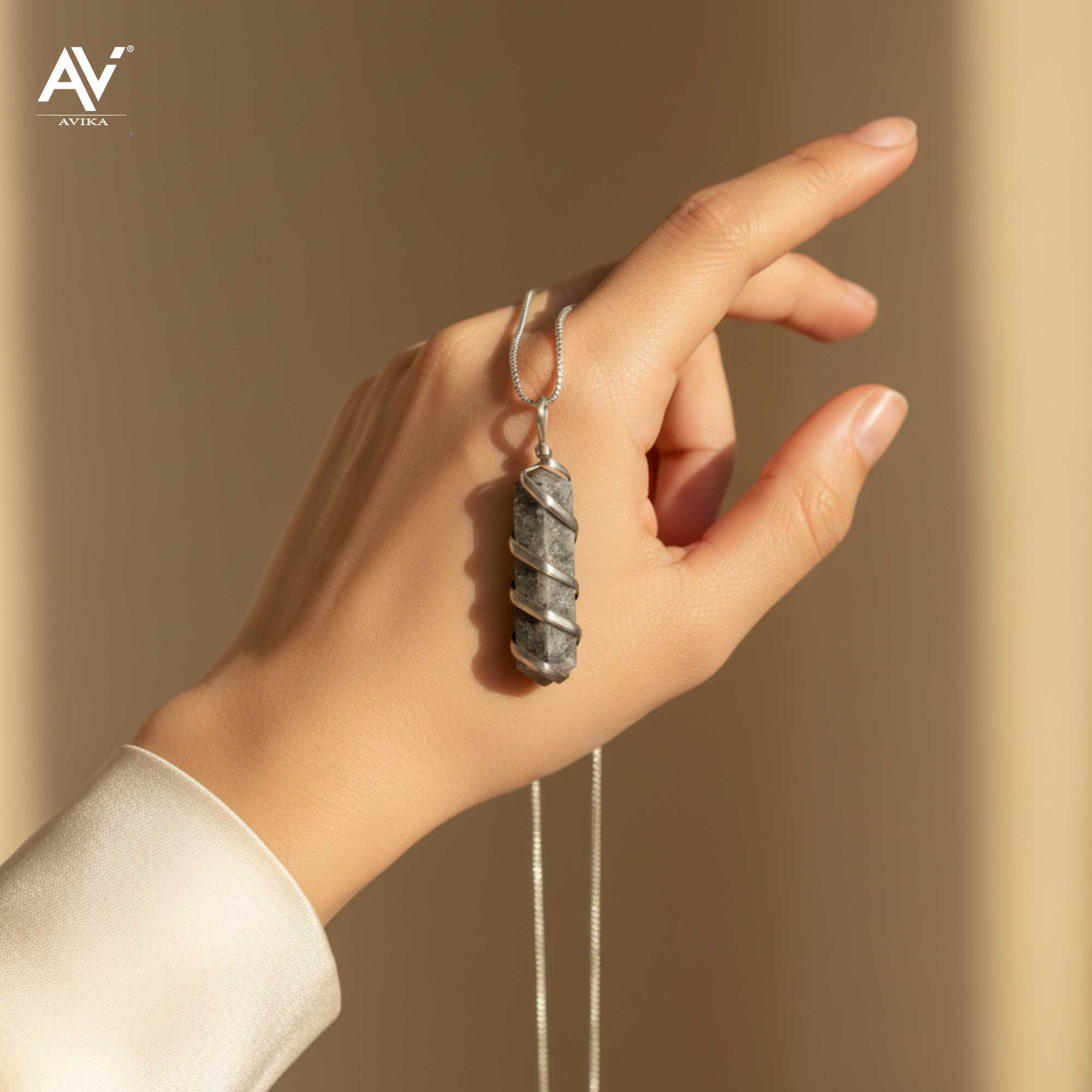 Avika Grey Aventurine Double Point Pendant is beautiful gift for you and your loved ones. In belongs to the family of Aventurine crystals found easily all over the world. As the name suggests the crystal is to remove grey or negative emotions and thought pattern and makes one happy and energetic. Upon keeping this Stone, one may experience serenity with the power of almighty. Note: These are natural stones and only shape has been given. Please note that you will be sent a similar pendant which is 100% natural. Availability may subject to in stock product. Data is collected from information provided by healers all over the world. We do not claim anything. The Picture is an indicative as these stones are natural, their color and size may vary as per their occurrence in their nature. (Rest information will be given along with the products).