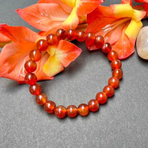 Natural Carnelian Bracelet – 8mm round beads, stretchable, 100% energized. Known to boost confidence, courage, and motivation. Suitable for men and women.