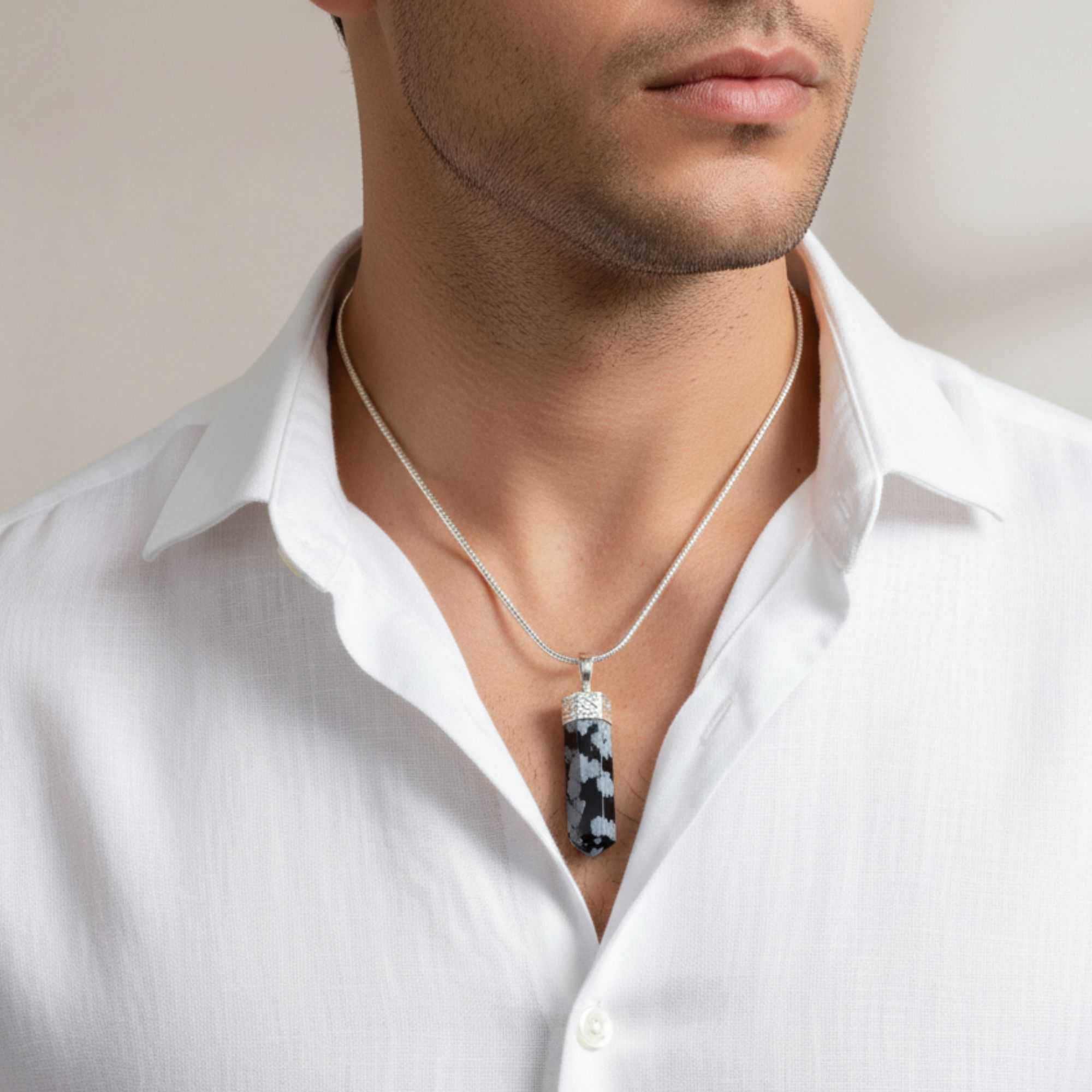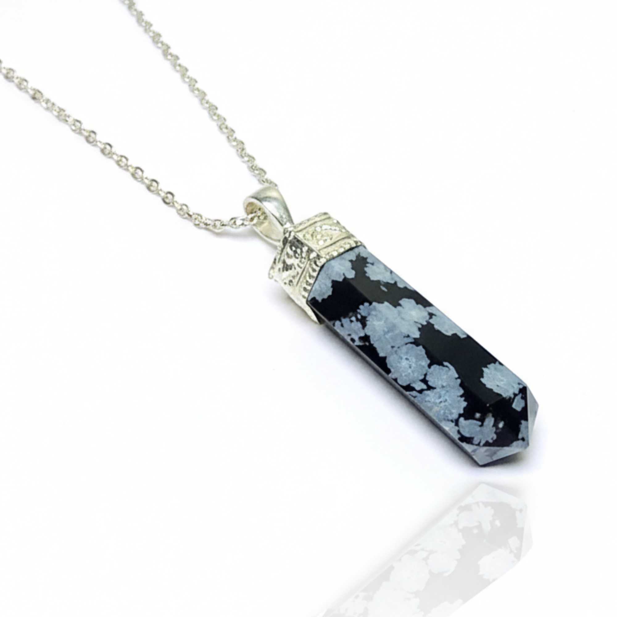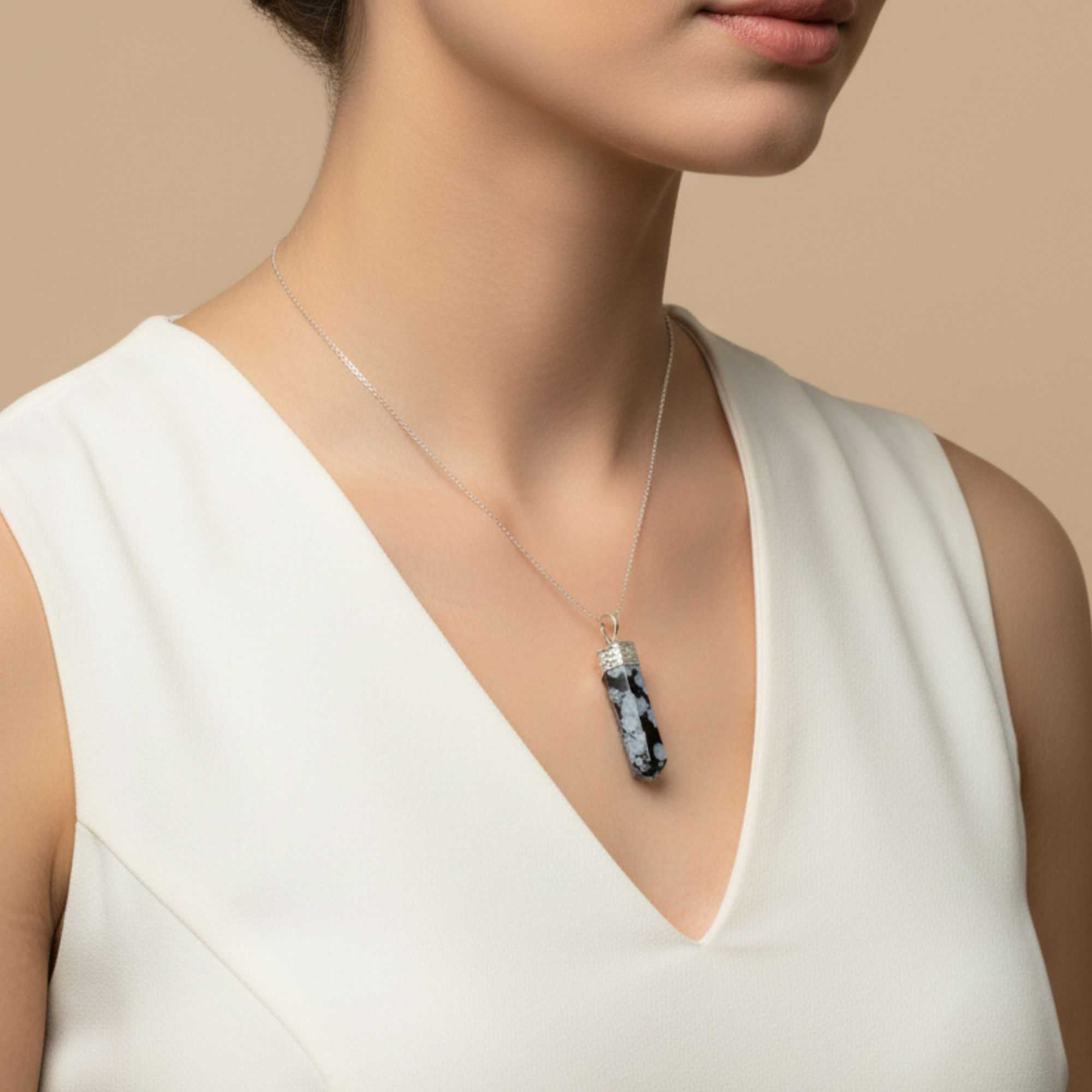 Avika Natural Energized Snow flake Obsidian Healing Point Pendant is made up of natural snow obsidian healing stone. It is a stone of purity; Snowflake Obsidian brings about a balance to body, mind and spirit. Snowflake Obsidian helps to keep centered and focused when any type of chaotic situation (office, commute, home, etc.) presents itself. Snowflake Obsidian can remove negativity from a space or person with ease. It is associated with the root chakra and is said to be beneficial for the veins, skeleton, and smooth skin. It helps to remove not only negative experienced in the environment, but also that of one\'s own emotions, such as anger, jealousy, greed, resentment, etc. Obsidian is often used for healing and releasing energy blockages, and has a tendency to work quickly to move truths to the surface to be resolved. Wear this pendant to enjoy its energy all day long and feel energetic. Note: These are natural stones and only shape has been given. Please note that you will be sent a similar pendant which is 100% natural. Availability may subject to in stock product. Data is collected from information provided by healers all over the world. We do not claim anything. The Picture is an indicative as these stones are natural, their color and size may vary as per their occurrence in their nature. (Rest information will be given along with the products).