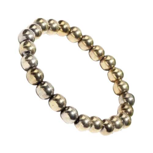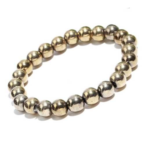 Avika Pyrite Beads Bracelet (Pack of 1Pc) is a healing mineral, found in a wide variety on Earth which occurs in pale golden color and often considered as Fool’s Gold in ancient times. The stone is excellent to bring wealth, income and bestows users with fortune in financial gains. This stone opens up the faculty of observing and understanding life, cleanses and removes energy blocks, supports regenerative processes and soothes the symptoms of old injuries and protective crystal against evil influences. Physical Healing: Stimulates the functions of the central nervous system, cerebellum and spinal cord, Helps with bronchitis and various respiratory system problems, and Supports the function of the thymus, pancreas, prostate and ovaries. Alleviates the symptoms of inflammations and protects against severe infection conditions. Strengthens the backbone and brings new strength to the heart. Releases general tension in the body and facilitates the bladder function. Note: These are natural stones and only shape has been given. Please note that you will be sent a similar bracelet which is 100% natural. Availability may subject to in stock product.