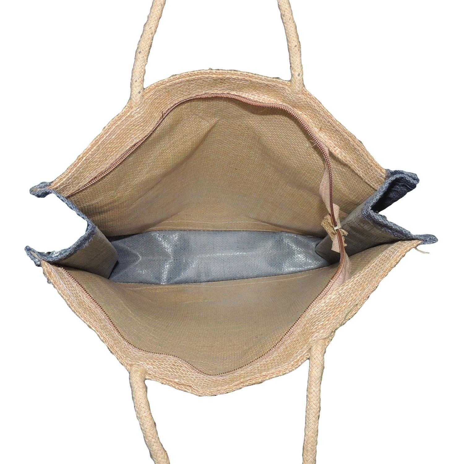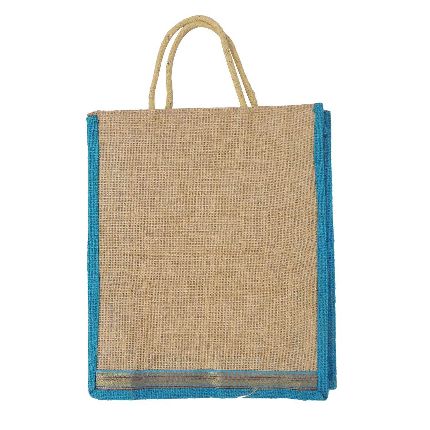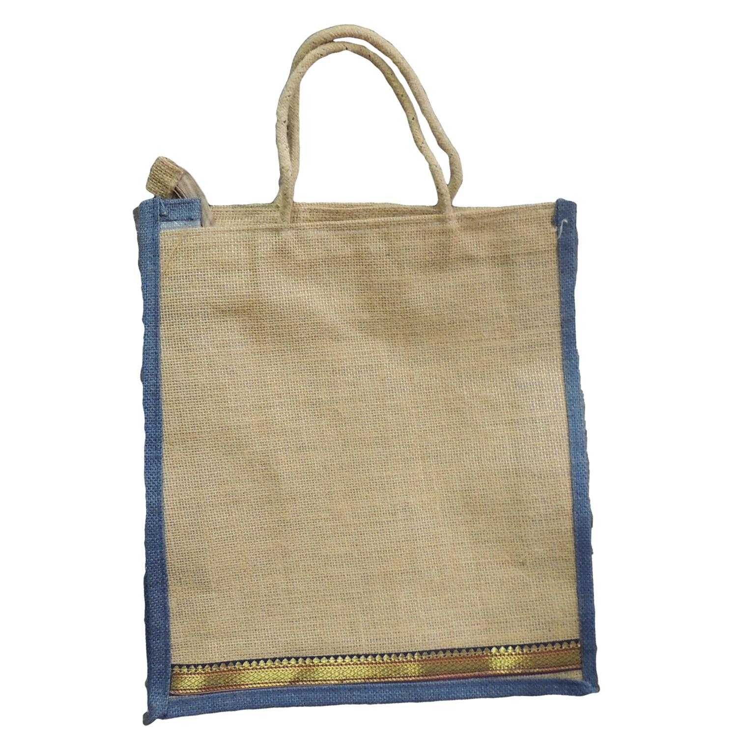 Alokik Eco Friendly (Blue Multipurpose Reusable Shoulder Shopping Carry Jute Bag (Pack of 2 Bags) (Blue) Laminated Jute Bags with Fabric for Ladies/Girls with Zipper (Big) is an elegant piece from the house of Satyamani. A perfect eco-friendly fashion for environmentally conscious people and nature lover's. These bags have no zip closure, and are easy to carry, 100% biodegradable. These bags are reusable and helps you do your part in protecting the environment by not throwing away paper and plastic bags. These bags are made from Natural Jute fabric and suitable for office, college, travelling and shopping. Beauty, practicality, and cuteness come together in these elegant and durable jute bags that come in different colors. The dyes used in bags are natural and hazard free. Made in India: laminated interior for extra strength and water resistance, made from fine, 100% natural burlap (jute). Excellent quality of stitching. Recommended Use: Reusable Grocery Bags, Shopping Bags, Travel Totes, Beach bag, Gym bag, Yoga bag, College bag, Gift bag, Women's handbag, Overnight bag, Barbecue and Outdoor dining bag, Shoes & Handbags, Shopping Bags, Baskets Bags, Briefcases, Lunch bag Wash & Care Instructions Natural fabrics are liable to shrink upon wash. All bags have been prewashed to reduce shrinkage as much as possible