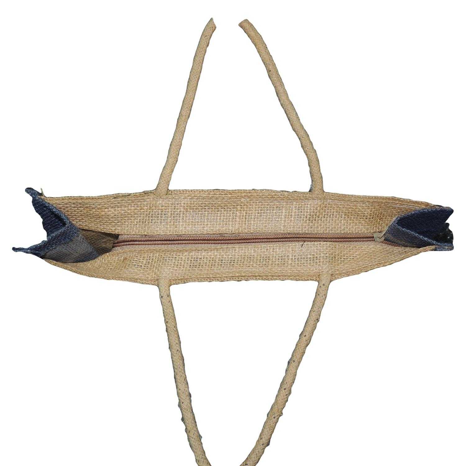 Alokik Eco Friendly (Blue Multipurpose Reusable Shoulder Shopping Carry Jute Bag (Pack of 2 Bags) (Blue) Laminated Jute Bags with Fabric for Ladies/Girls with Zipper (Big) is an elegant piece from the house of Satyamani. A perfect eco-friendly fashion for environmentally conscious people and nature lover's. These bags have no zip closure, and are easy to carry, 100% biodegradable