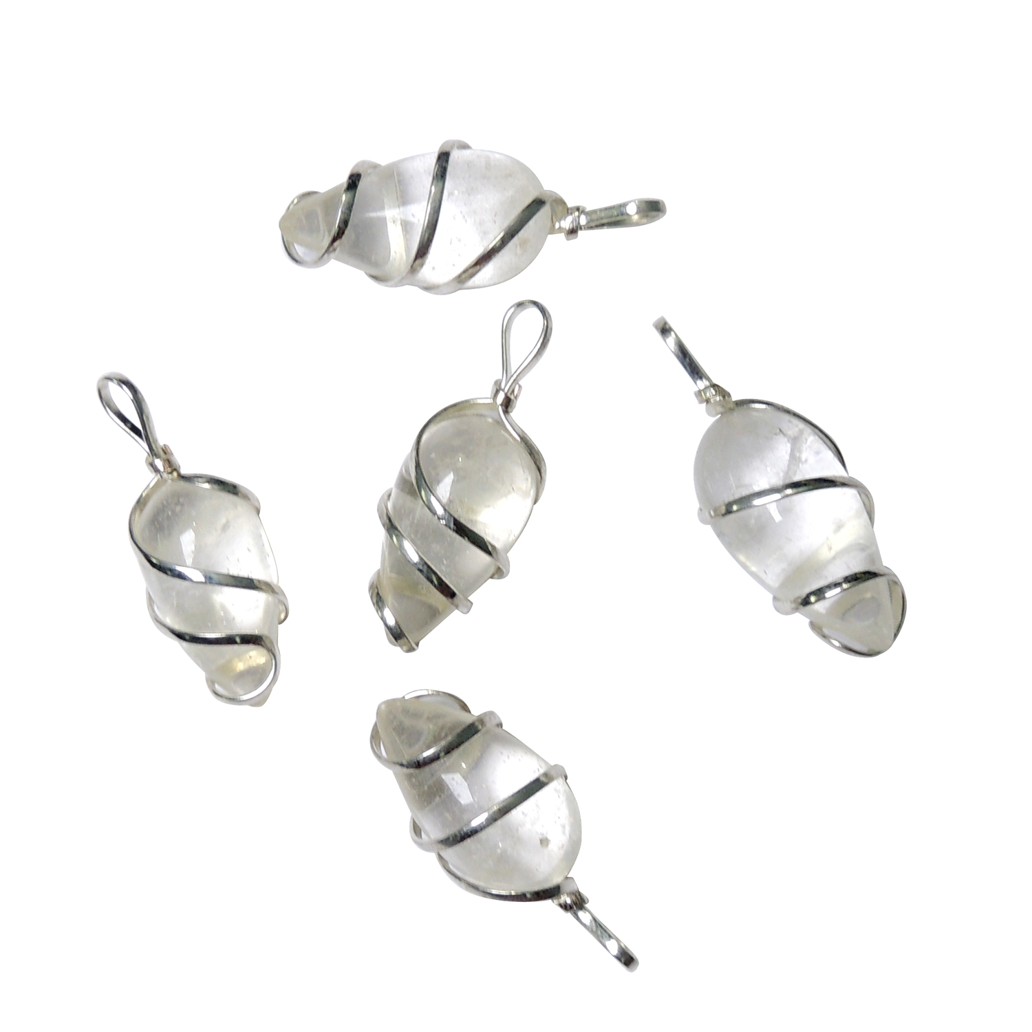 Avika Clear Quartz Drop Spiral Pendant is made up of natural clear quartz healing stone. Clear Quartz Crystals are some of the most common types of crystal on the planet. Although they are called \'clear quartz\', they range from crystal clear stone through to milky or cloudy, almost opaque crystals. They have a very strong vibration and excellent metaphysical properties, and are the easiest crystals to program, which may used for a variety of purposes. They resonate strongly within the eighth chakra, commonly known as the soul star chakra, and within the higher transpersonal chakras. Using Clear Quartz crystals will assist the higher chakras to emanate white light and aids your connection with spirit. Clear Quartz draws off negative energy of all kinds, neutralizing background radiation, including electromagnetic smog or petrochemical emanations. It balances and revitalizes the physical, mental, emotional and spiritual planes. Cleanses and enhances the organs and subtle bodies and acts as a deep soul cleanser, connecting the physical dimension with the mind. Note: These are natural stones and only shape has been given. Please note that you will be sent a similar pendant which is 100% natural. Availability may subject to in stock product. Data is collected from information provided by healers all over the world. We do not claim anything. The Picture is an indicative as these stones are natural, their color and size may vary as per their occurrence in their nature. (Rest information will be given along with the products).