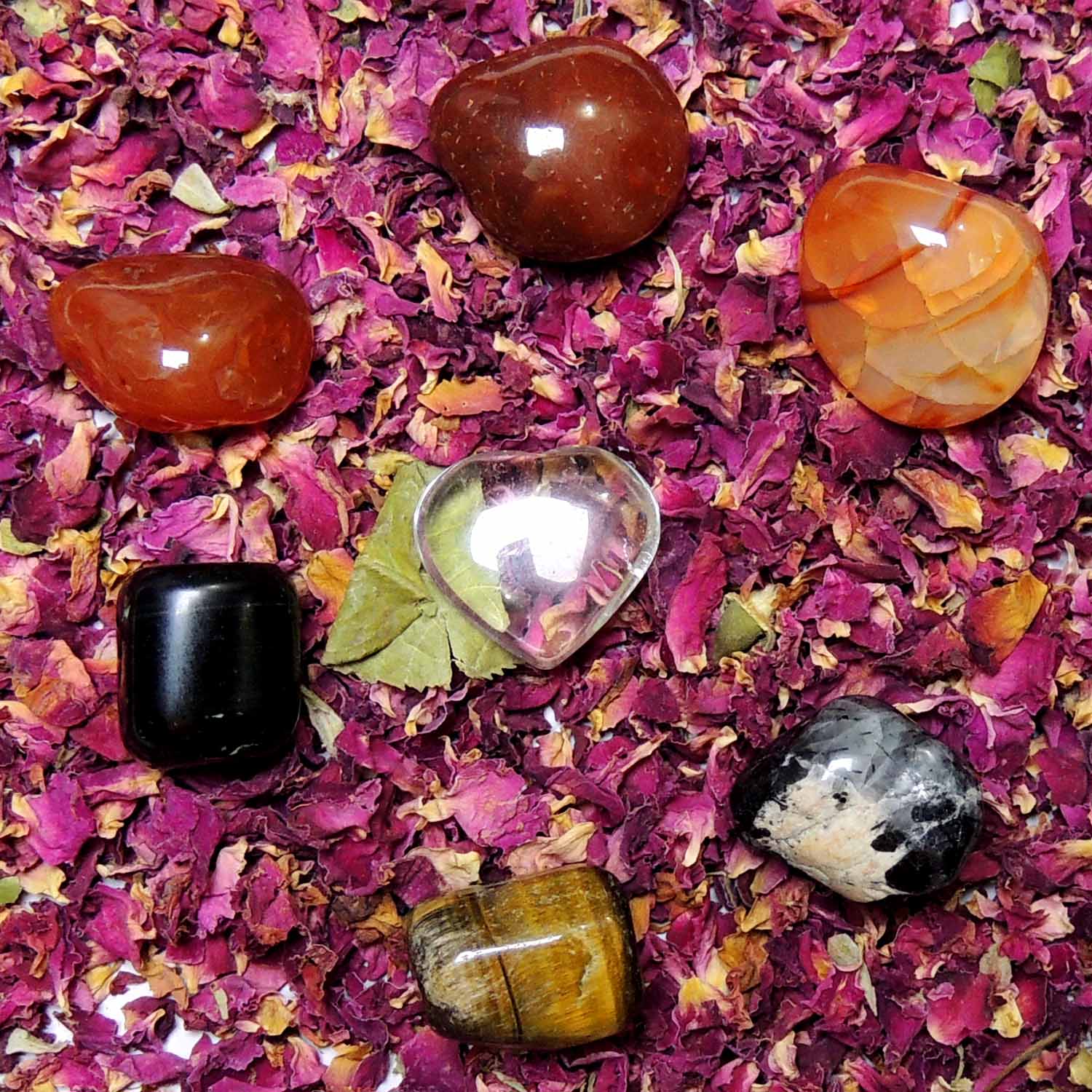 Avika Gift on Valentine with Love, on Valentine with Special Evil Protection because Love is when the desire to be desired takes you so badly that you feel you could die of it. Express your special feelings of true love and care for him/her, on the special occasion of Valentine with gifting him/her the valuable set of SATYAMANI CRYSTALS which are specially energized with the energy of love and protection. The Bouquet of these energized crystals with the bunch of flowers will easily express or show your emotions, your feelings, your care and the most important your concern for your loved one. By gifting these beautiful set of energized crystals, spread the essence of love in the air and let the crystals do their magic and both of you will get flooded with love for each other. This Bouquet of Love includes the energy of 3 pc of Carnelian Tumbled stones (brings joy and friendship, pleasure, and family togetherness), 1 pc of Clear Quartz Heart (acts as a deep soul cleanser, purifying and enhancing the body\'s internal structure and surrounding subtle bodies to connect the physical dimension with the mind), 1 pc of Obsidian Tumbled stone (deepens our connection to the physical, natural world. It brings power and strength, relieving fears), 1 pc of Tiger