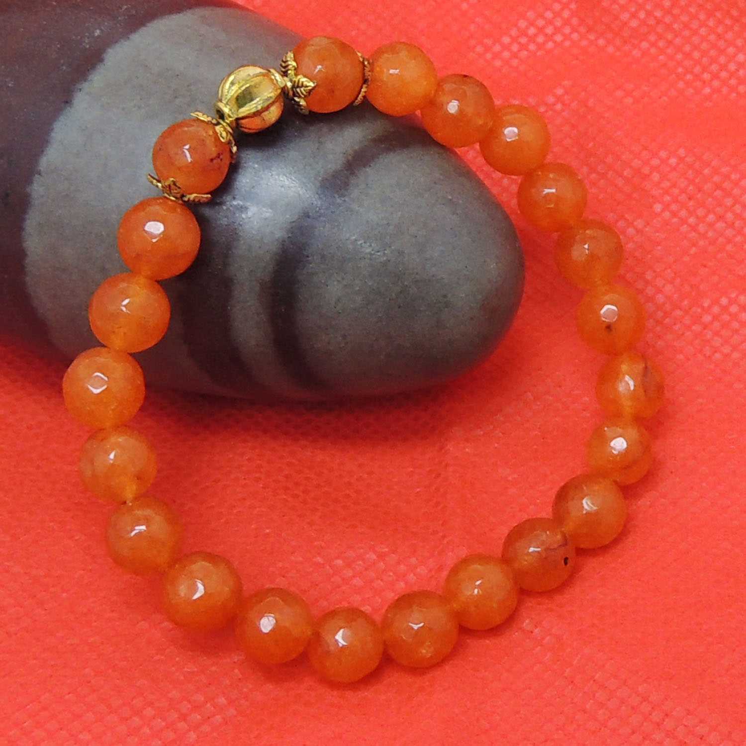 Avika Heat Processed Carnelian 8 mm Bead Bracelet Designer 2 is a beautiful energy gift for you and your loved ones. It is associated with all chakras and is said to be stone of intimacy. It increases one demand for caring, love and affection and sometimes it is used as an energy booster. Carnelian activates life force and stimulates metabolism.
