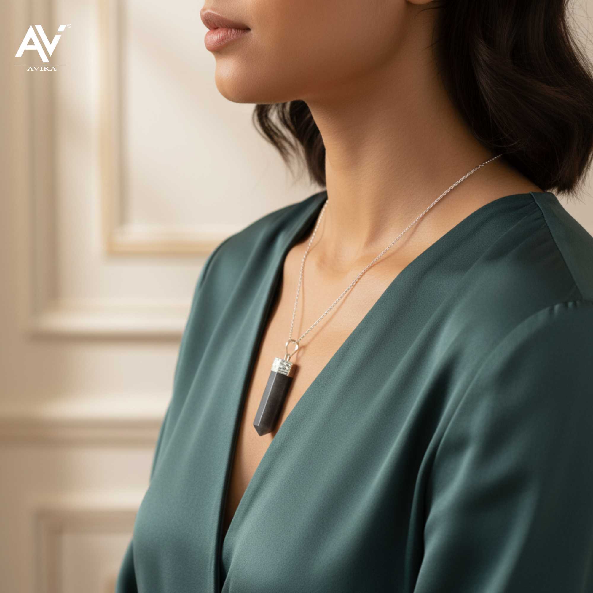 Avika Natural Black Labradorite Point Pendant (set of 2 pcs.) is made from power stone healing stone which allows you to see through illusions and determine the actual form of your dreams and goals. It is excellent for strengthening intuitions. Use Labradorite to: Stimulate imagination, Develop enthusiasm and thus, new ideas and to see more clearly in meditation. (Rest Details and Usage Method will be sent along with the product).