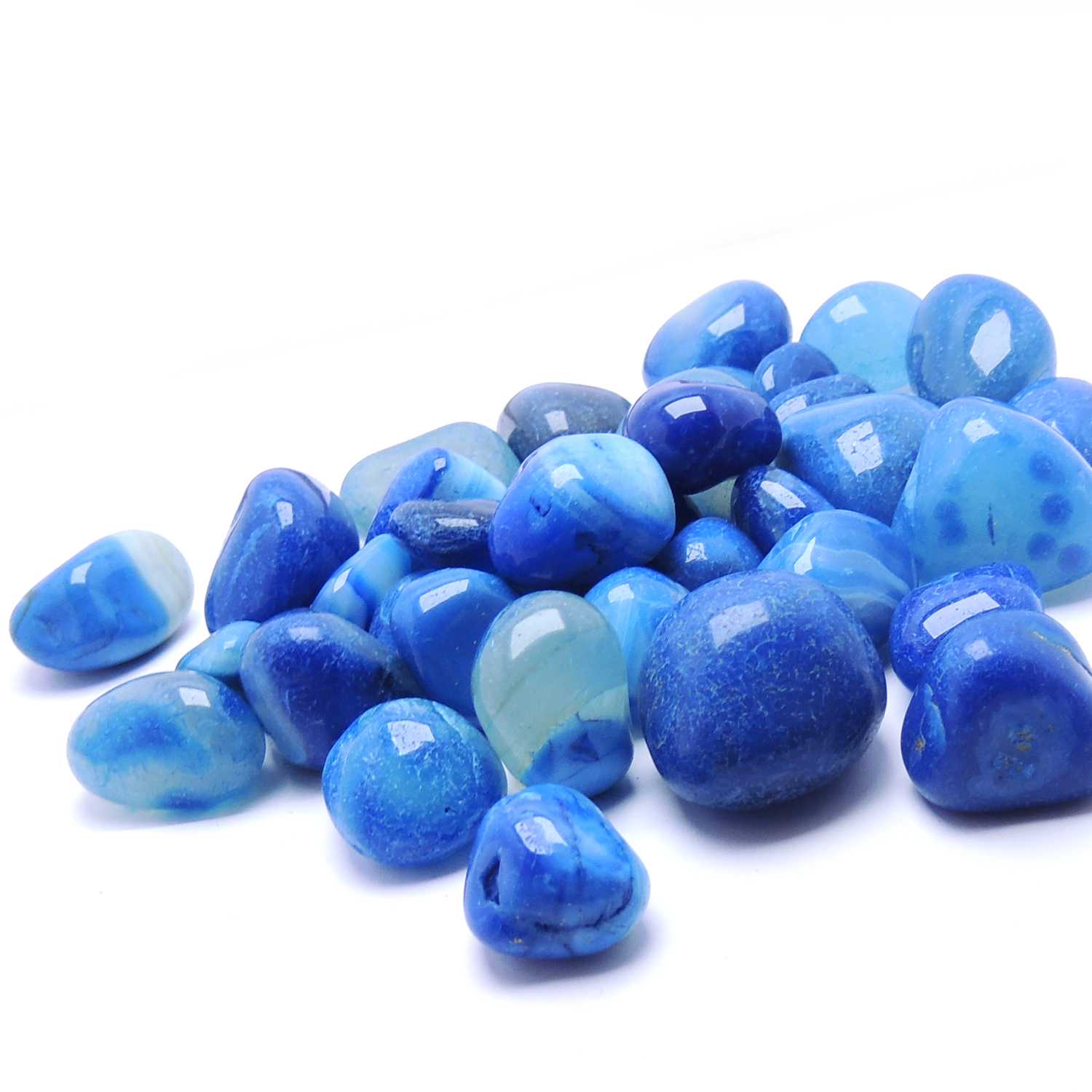 Avika Natural Blue Onyx Tumble stone is for enhancing inner strength, focused attention, willpower, self-mastery, discipline & reason. Onyx comes in various colors Blue, Green, Black and White etc. Onyx is an excellent stone for releasing negative emotions such as sorrow and grief, and therefore brings good fortune and helps in recognizing personal strength. They also recommend it for improving concentration and devotion, calming sexual tension and ending marital disputes. On the physical level in the crystal-healing, onyx helps in healing wounds at the times of childbirth. Onyx is also known to increase personal energy and aid in self-control. It is often used to help change bad habits and offers define against the draining of one\'s natural energies. (Rest Details and usage method will be sent along with the product) Note: These are natural stones and only shape has been given. Availability may subject to in stock product. Data is collected from healers all over the world. We do not claim anything.
