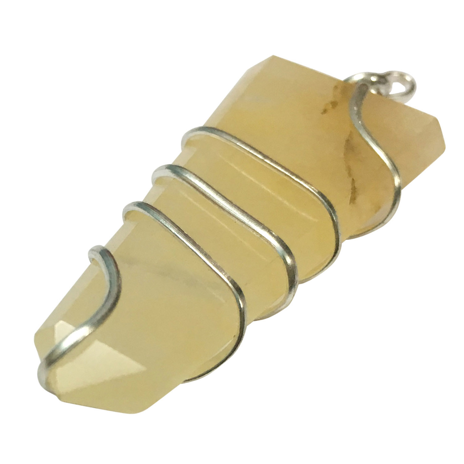 Avika Natural Clacite Flat wrapped Pendant is made up of natural Calcite crystals. They have wonderful, quite powerful attributes, and they are very easy to use. By simply holding one in your hand, you can create an amazing flow of energy through your body, as they are strong energy amplifiers. Colors include: colourless, gray, yellow, red, pink, orange, green, blue-brown and black. Calcite is also often fluorescent. This makes it an excellent stone for distance healing, as well as other types of healing. One of the energies it amplifies is learning abilities, and thus is a great stone for students. Calcite is a protecting; grounding and centring stone, and can help bring inner peace. Since calcite also promotes creativity and imagination, this inner peace it can bring is a vibrant one. Physically, calcites are said to be good for back pain, increasing physical strength, teeth, eyes, and are generally good for healing. Clear calcite can be used for treating all conditions. It is used for detoxifying and as an antiseptic agent. Wear this pendant to enjoy the energies of this wonderful stone with you all the day. (Rest of the details will send you along with the product) Note: these are natural stones so there may be the difference in color and in drawing of the stone as per their occurrence in the nature. The stones have grains in them, which are due to their crystal structure. These are natural stones so they are not completely finished some cracks and holes are there due to the variation of hardness in stones. You will get 100% similar product as per the availability in the stock.