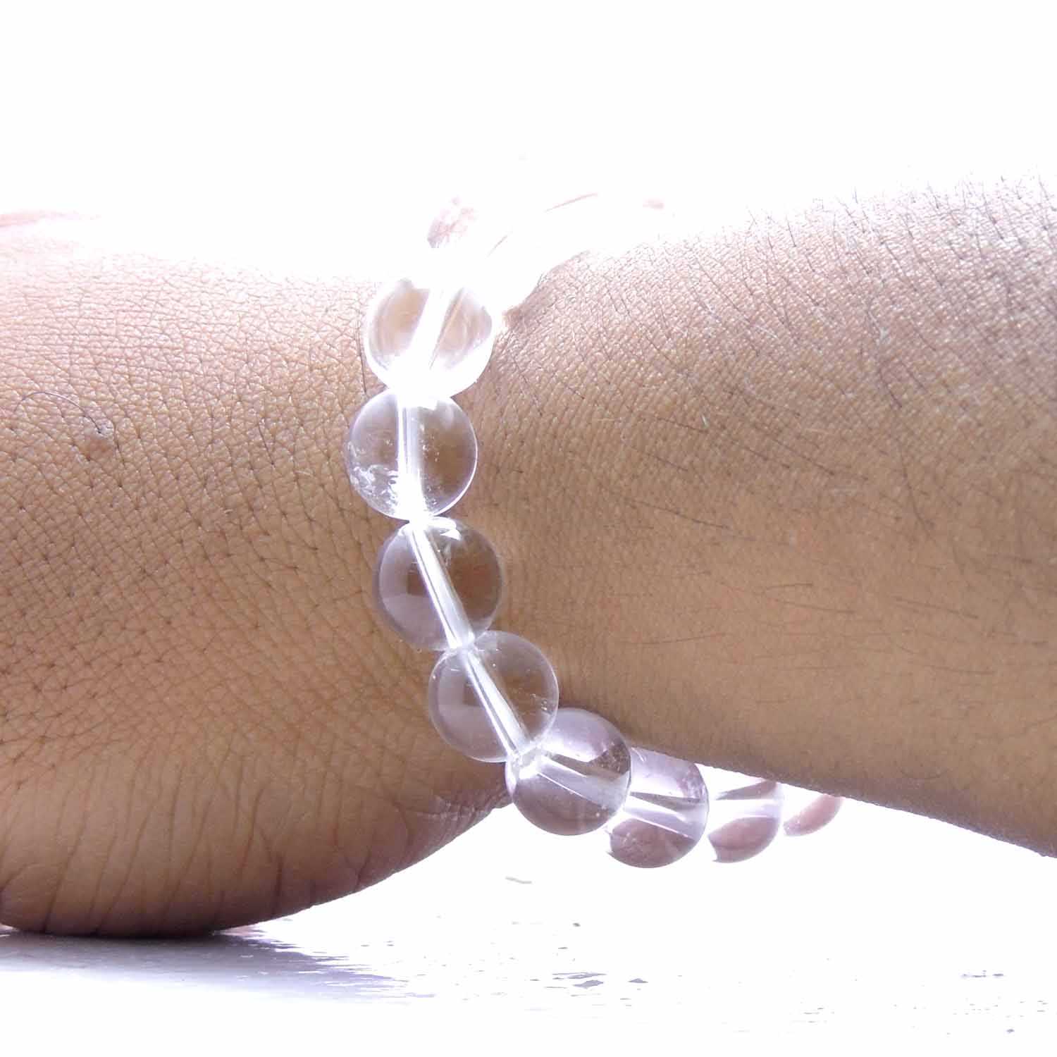 Avika Natural Clear Quartz 10 mm Bead Bracelet For protects negativity, connecting higher self is a beautiful Bracelet for you and your loved ones. This beautiful Clear Quartz is made from genuine quartz stones. It is a clear variety of quartz that was first found high in the frozen mountains of the Alps. It is said to have cooling powers and is a romantic stone. This cools of the mind and bring peace and harmony in oneself. Wear this Bracelet to hear explore your inner truth and other senses. Upon wearing this Bracelet, one may experience serenity with the power of almighty. (Rest Details and Usage Method will be sent along with the product). Note: These are natural stones and only shape has been given. Please note that you will be sent a similar product which is 100% natural. Availability of the product may subject to be in stock. Data is collected from healers all over the world. We do not claim anything.