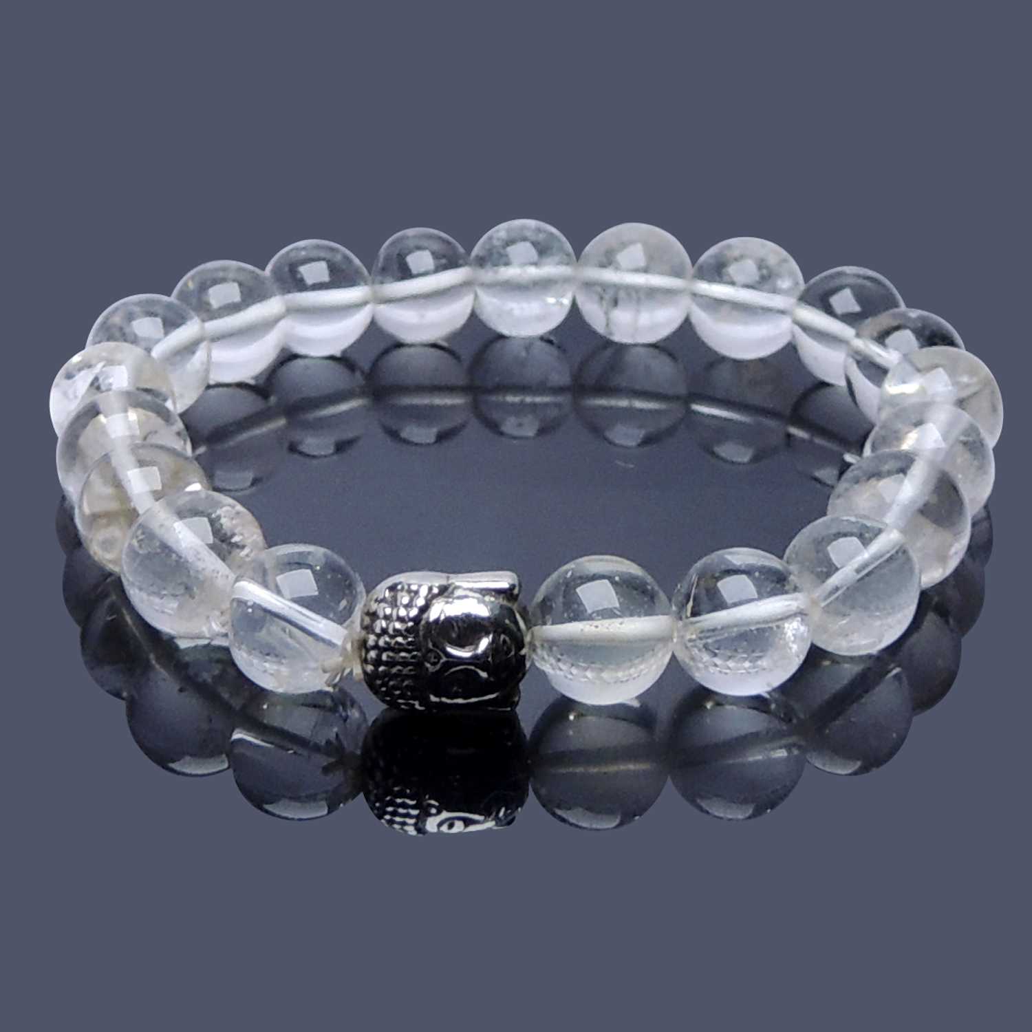 Avika Natural Clear Quartz Buddha Bracelet (Pack of 1Pc) is a beautiful Bracelet for you and your loved ones. This beautiful Clear Quartz is made from genuine quartz stones. It is a clear variety of quartz that was first found high in the frozen mountains of the Alps. It is said to have cooling powers and is a romantic stone. This cools of the mind and bring peace and harmony in oneself. Wear this Bracelet to hear explore your inner truth and other senses. Upon wearing this Bracelet, one may experience serenity with the power of almighty. Note: These are natural stones and only shape has been given. Please note that you will be sent a similar product which is 100% natural. Availability of the product may subject to be in stock.