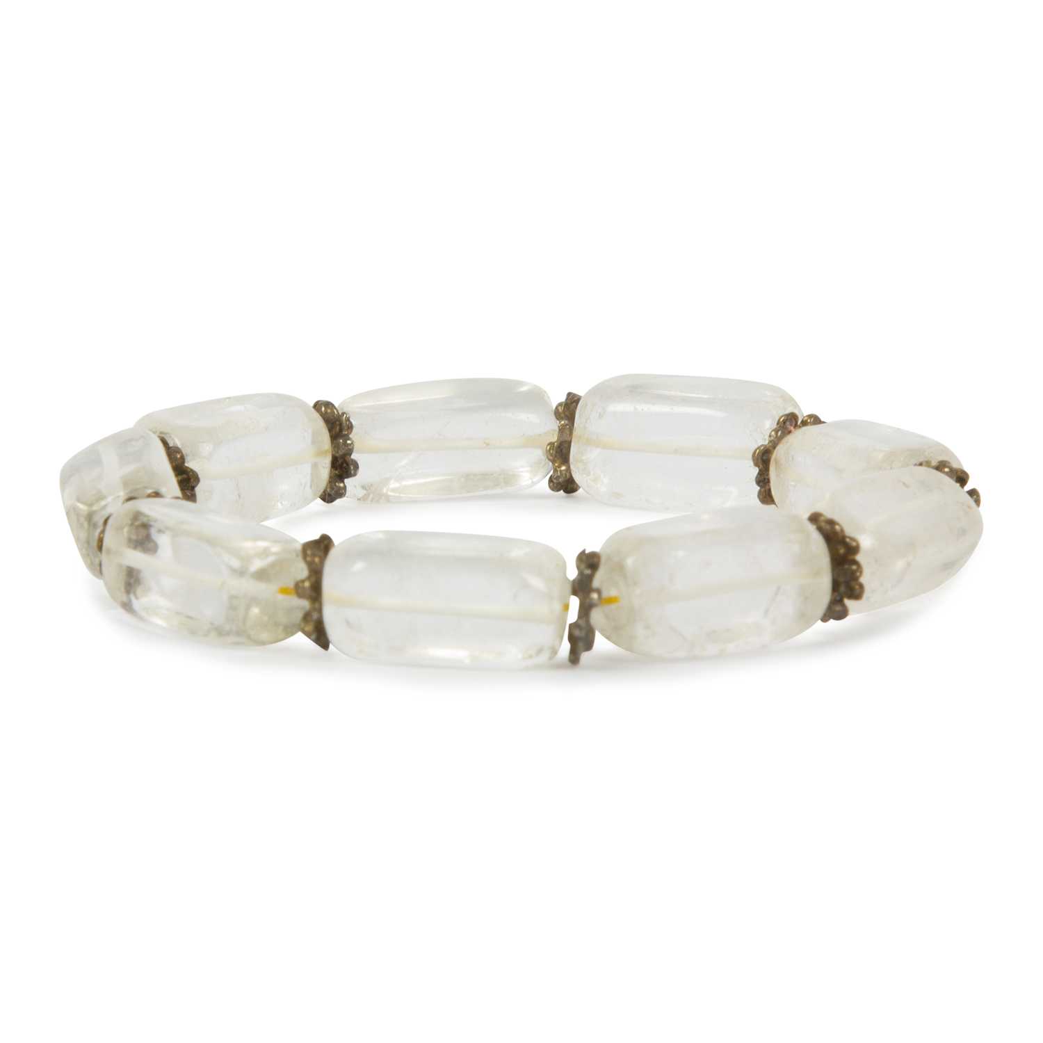 Avika Natural Clear Quartz Cuboid Tumble Gemstone With Metal Ring Bracelet (Pack of 1 Pc.) is a bracelet having high resonating vibrations which connects you with your ethric body. Clear Quartz Crystals are some of the most common types of crystal on the planet. Although they are called 'clear quartz', they range from crystal clear stone through to milky or cloudy, almost opaque crystals. Clear Quartz is known as the "master healer" and will amplify energy and thought, as well as the effect of other crystals. They are also known as rock crystals, they have a very strong vibration and excellent metaphysical properties, and are the easiest crystals to program, which may used for a variety of purposes. This is why they are utilized in industry and are used to make silicon chips for computers and radios and other man made devices, many of these stones have a very high vibration.