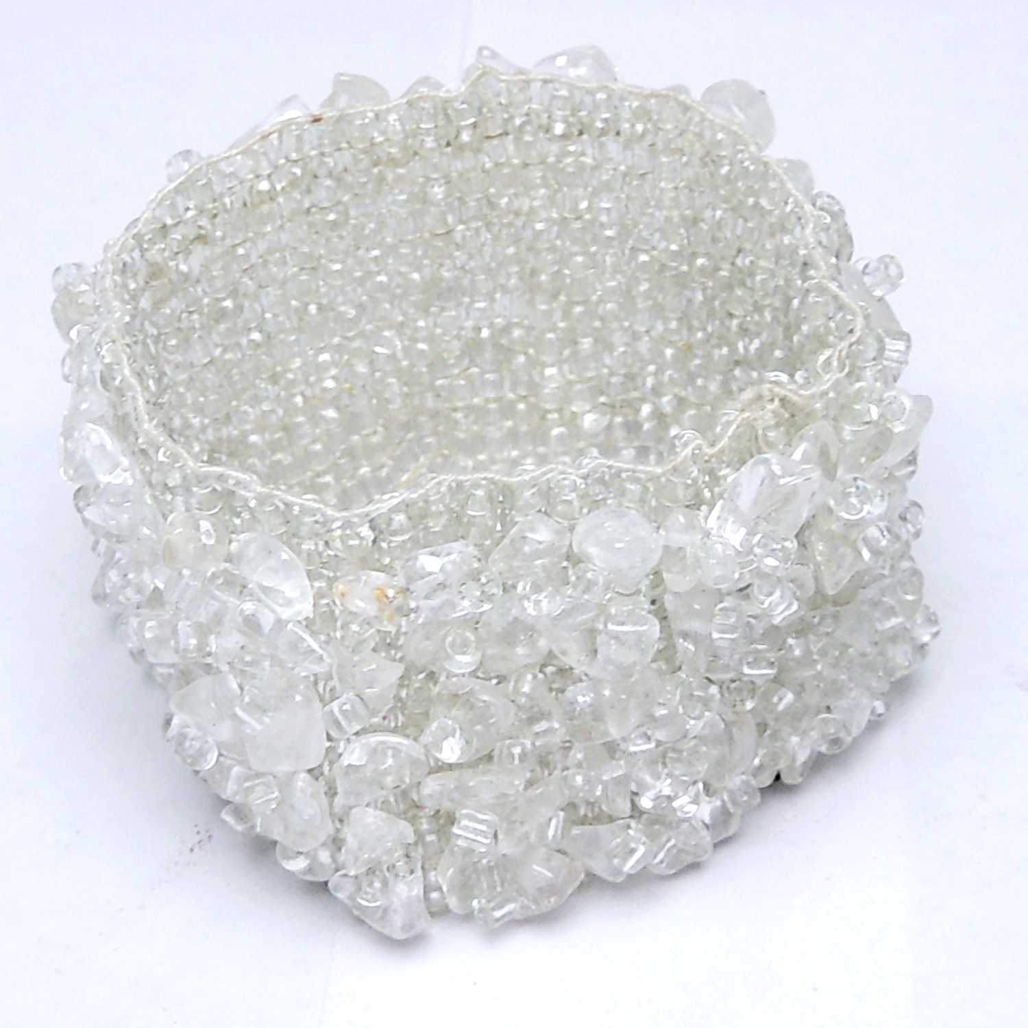 Avika Natural Clear Quartz Gemstone Chip Bracelet for Clarity (Pack of 1 Pc.) is from quartz family, which is available worldwide and is used for meditation, calmness and increasing focus in life. Clear Quartz is known as the "master healer" and will amplify energy and thought, as well as the effect of other crystals. It absorbs, stores, releases and regulates energy. They resonate strongly within the eighth chakra, commonly known as the soul star chakra, and within the higher transpersonal chakras. These crystals also create a powerful resonance within both the third eye chakra and the crown chakra, which is the highest chakra in the physical body. Benifits: 1. Guides you towards a goal and focuses on further development in life. 2. Balances the energy flow. 3. Purifies energies. 4. Leads you on a search for peace, affords relaxation and breaks down stress." (Rest details and usage method will be sent along with the product). Note: These are natural stones and only shape has been given. Shape and size of the bracelet may vary from the image as per the availability of the product in stock. Data is collected from folklore and healers all over the world. We do not claim anything. Maintenance/Cleaning: Wash it with running tap water do not use salt water or Soap/Detergent water for cleaning, it may ruin the metaphysical properties of the crystal and the crystal too.
