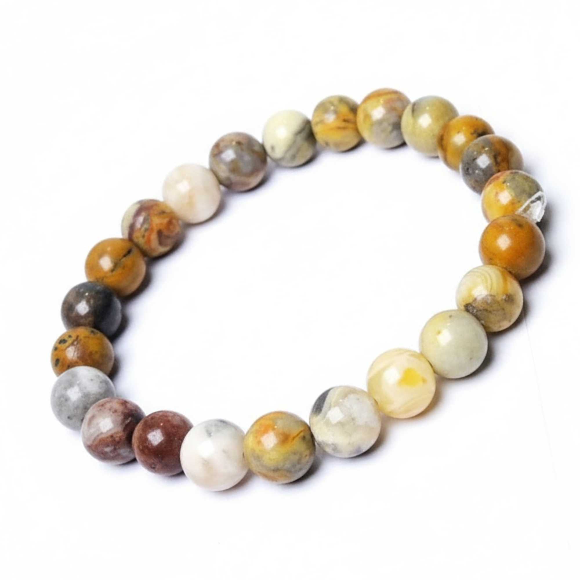 Avika Natural Crazy Lace Agate Beads Bracelet (Pack of 1Pc) is the spirit of a horse reminds us that we are all unique. Our spirit knows that life is full of adventure, so run, gallop and leap into the unknown. The Native American Shamans said the spirit of the horse enabled them to travel into their mind's inner realms and transport them into higher levels of awareness. A horse symbolizes independence, beauty, energy and grace. See your goal and move forward and allow the spirit of the horse to be your guide. Satyamani Free Spirit Bracelet is created to help you bring forth your inner free spirit. Crazy Lace Agate is a powerful healing stone that emits strength, power and courage. It encourages concentration, focus and balance. It is good for protection and strengthening personal will power. Turquoise is a master healing stone. It is widely believed in the Middle East that tying a turquoise bead on the tail or mane of a horse will protect both the horse and rider from any harm. It helps to increase self -worth and personal passion. (Rest information will be given along with the products). Note: These are natural stones and only shape has been given. Please note that you will be sent a similar Bracelet which is 100% natural. Availability may subject to in stock product. Data is collected from healers all over the world. We do not claim anything.