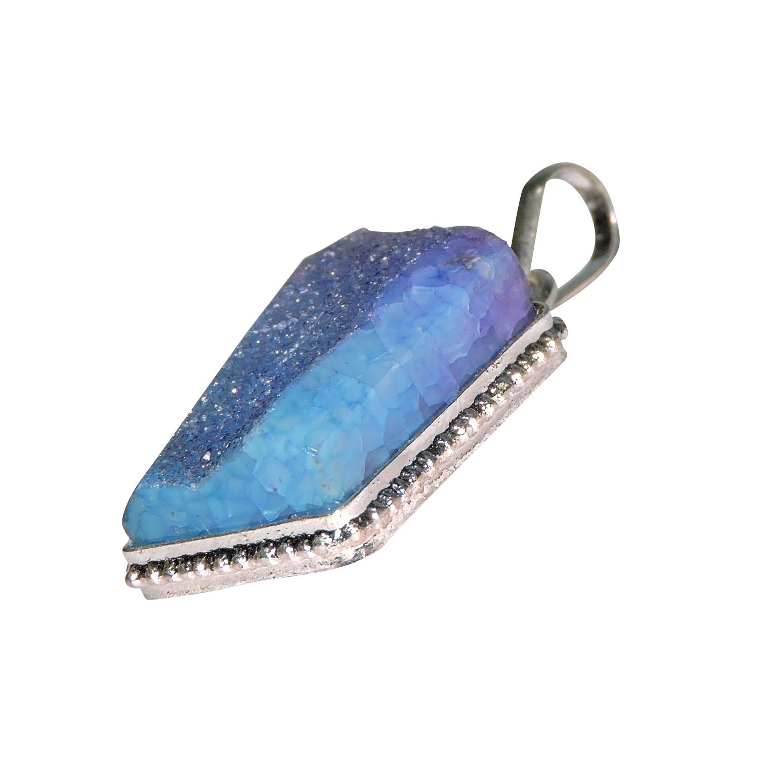 Avika Natural Druzy Stone Pendant Art 8 is a configuration of many tiny sparkling crystals on the surface of a bulky crystalline body. This type usually grows over another matrix, but it may or may not be in contact the matrix afterward. Druzy crystal