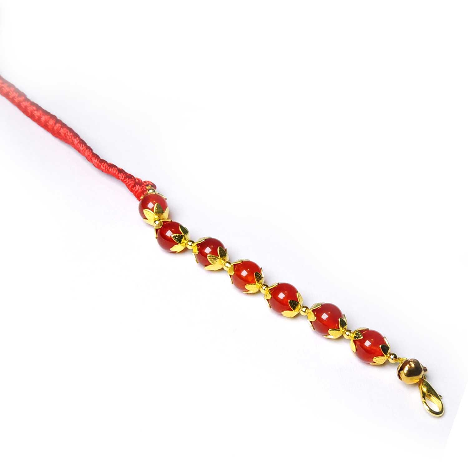 Avika Natural Energized Red Onyx Designer Friendship Band is a Friendship Band of protection, for Strength and Success brings harmony in body, mind and spirit. On every Friendship Band, your brother eagerly awaits for you to start the customary ritual of tying the sacred Friendship Band thread! Explore the best designer Friendship Bands online and buy the best ones for your darling brother. In case if your brother is staying in a different city or country, send designer Friendship Band online and make this Raksha Bandhan memorable for him. These Friendship Bands are especially hand-woven by the artisan to make the occasion more special! This is an ideal Friendship Band used to bring balance in Solar Plexus Chakra and a stone of high vibration, which enables inner balance of the soul and spirit. Benefits of this Friendship Band are: 1. promotes clear communication and supports mutual cooperation and understanding2. Dispels mental and emotional tension and helps calming a hyperactive character 3. In a balanced way, maintains a focus on a goal and supports organizational skills. 4. Helps resolve inner restlessness and establish life on the foundation of good values. It promotes the expression of creative inspirations, thought and the directions of the mental world.