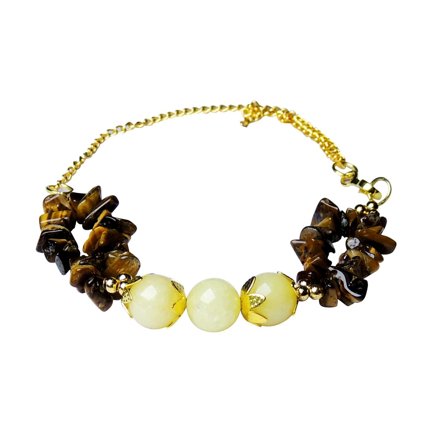 Avika Natural Energized Tiger Eye & Moon Beads Designer Floweral Friendship Band is a Friendship Band of protection, for Strength and Success brings harmony in body, mind and spirit. On every Friendship Band, your brother eagerly awaits for you to start the customary ritual of tying the sacred Friendship Band thread! Explore the best designer Friendship Bands online and buy the best ones for your darling brother. In case if your brother is staying in a different city or country, send designer Friendship Band online and make this Raksha Bandhan memorable for him. These Friendship Bands are especially hand-woven by the artisan to make the occasion more special! This is an ideal Friendship Band used to bring balance in Solar Plexus Chakra and a stone of high vibration, which enables inner balance of the soul and spirit. Benefits of this Friendship Band are: 1. promotes clear communication and supports mutual cooperation and understanding2. Dispels mental and emotional tension and helps calming a hyperactive character 3. In a balanced way, maintains a focus on a goal and supports organizational skills. 4. Helps resolve inner restlessness and establish life on the foundation of good values. It promotes the expression of creative inspirations, thought and the directions of the mental world.