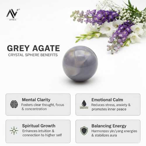Avika Natural Grey Agate Gemstone Sphere/Balls is actually a combination of volcanic matter, anhydrite, hematite, sulfur, arsenic, etc. There is much debate over whether it is a true jasper or an agate, as some have called it. The lovely patterns on this stone often imitate the coloring found on ocean jasper, hence the name. Ocean Jasper activates the Sacral and Solar Plexus chakras, enabling you to accept change, find new opportunities, increase your self-esteem and make decisions without relying on emotions. Physically, Ocean Jasper can help with abdominal issues, allergies, the nervous system, and heart and circulatory system disorders. Note: These are natural stones and only shape has been given. Please note that you will be sent a similar product which is 100% natural. Availability may subject to in stock product. Data is collected from folklore and healers all over the world. We do not claim anything.