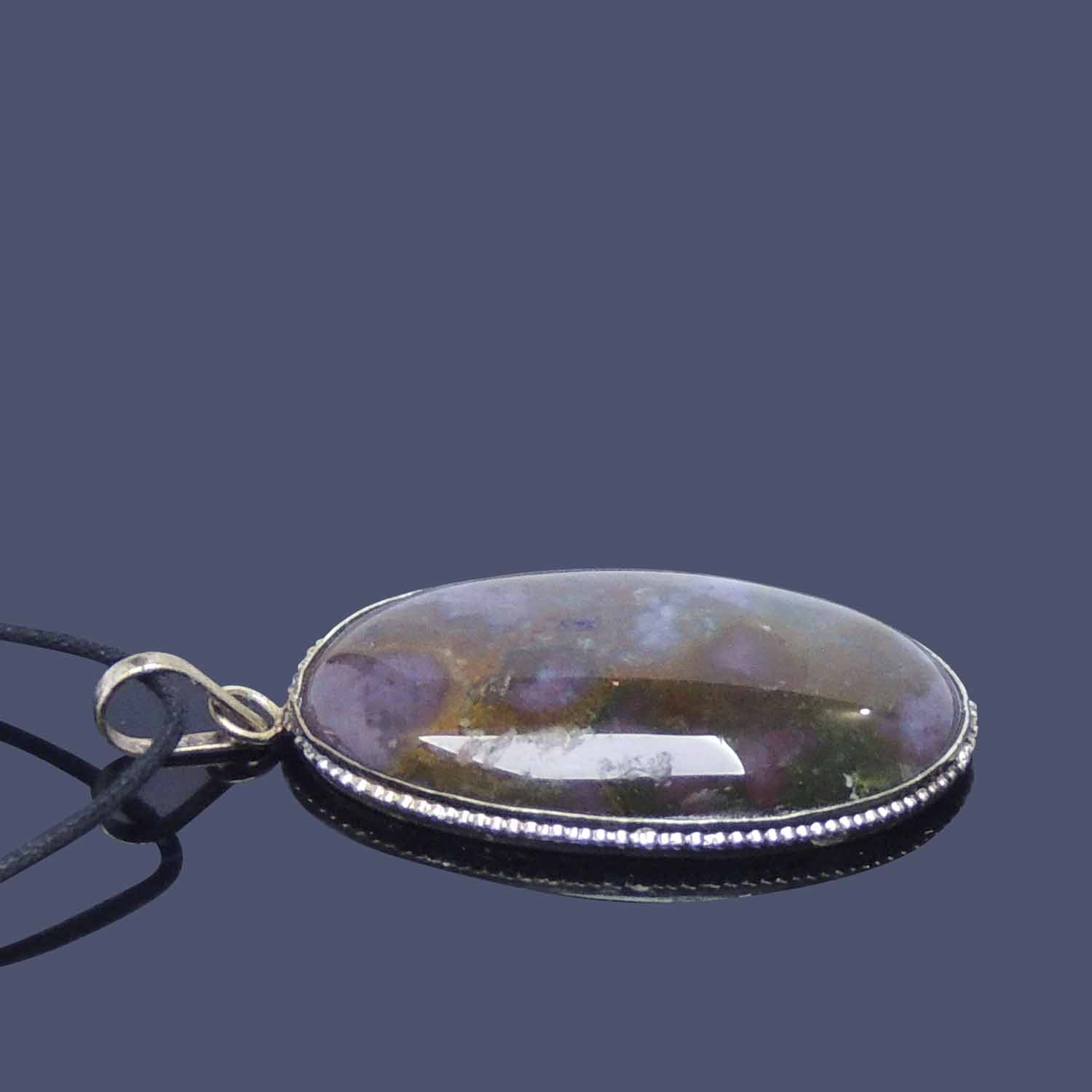 Avika Natural Moss Agate Oval Pendant Art-2 is made up of natural moss agate healing stone. Moss agate is said to bring general abundance, success, and prosperity. It is also said to help one gain peace with extreme or excessive duties in life and brings self-confidence and higher self-esteem. Moss agate is also said to be a metaphysically protective stone, as are all agates.