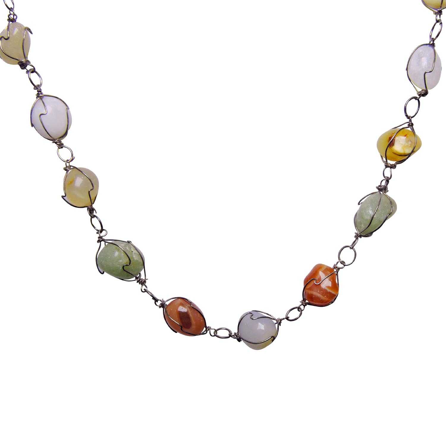 Avika Natural Multi Tumble Stone Wire Wrap Necklace release energy that crystals naturally give off and that you are able to use to heal yourself. You can apply the metaphysical properties of these more powerful crystals as you learn how you can use them to heal yourself.