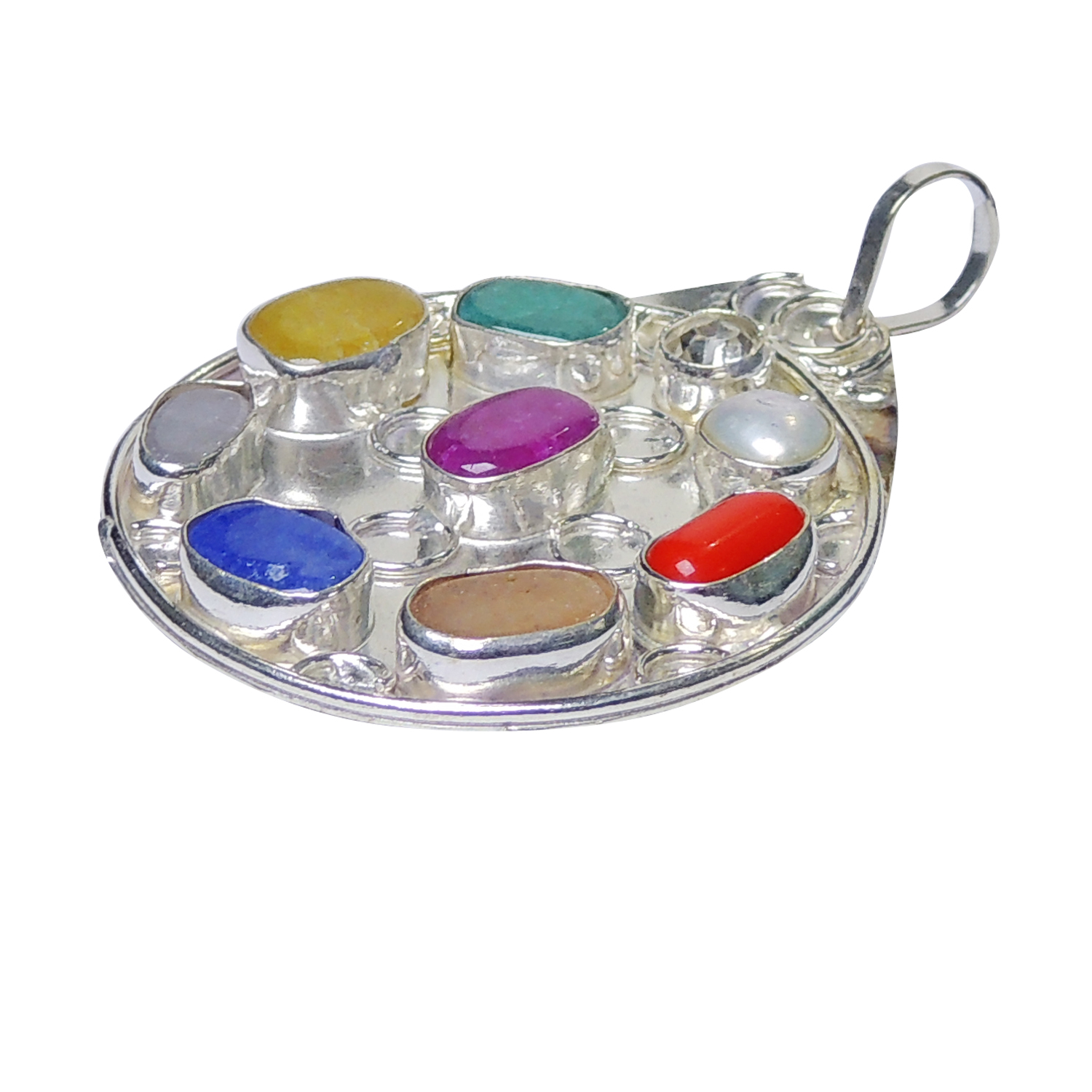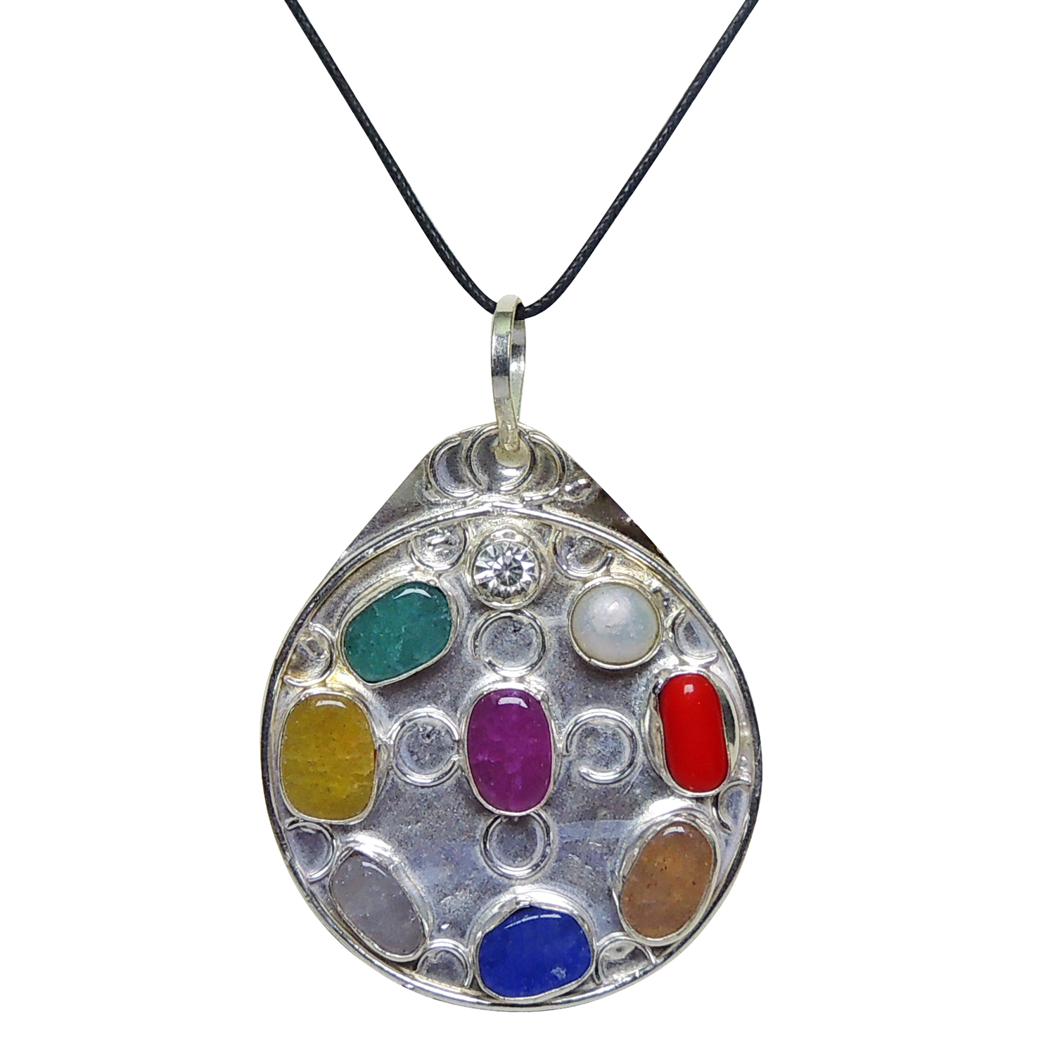Avika Natural Navgrah Gemstone Round Pendant is made up of nine natural precious stones. They have a uniquely powerful way to mitigate and nullify the unpleasant effects of past wrong actions, negative planets and can potently benefit a person