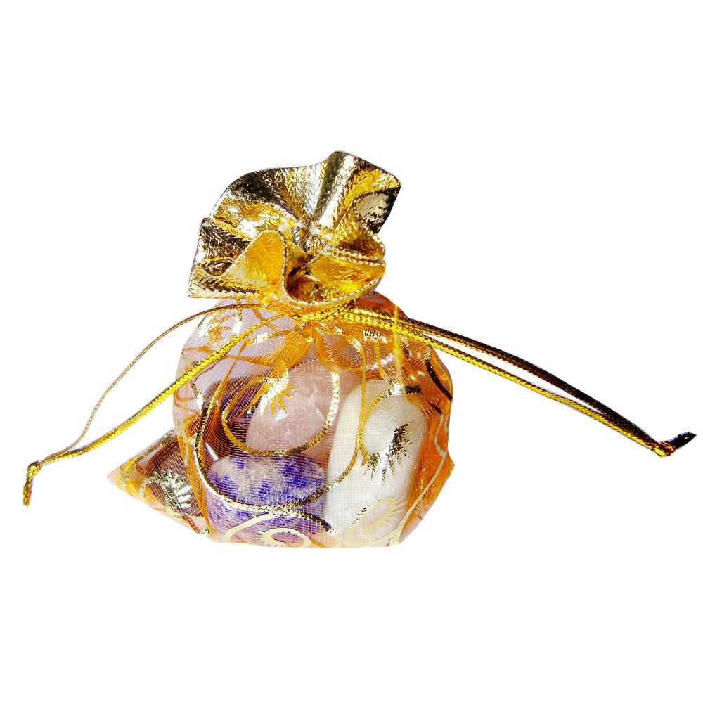 Avika Natural Peaceful Home Crystals Potli fill your home with tranquil and calming energies. Sodalite brings a peaceful energy to create harmony in your home. It helps to absorb any negative energies persisting in your home. Amazonite emits soothing energies that fill your home with tranquility. Rose Quartz carries a soft feminine energy of compassion and peace, tenderness and healing, nourishment and comfort. It is very good for expressing and soothing emotions. Lapis Lazuli helps in communicating your views and ideas properly which decreases clashes. Black Agate helps in dispelling negative energies from the environment. It helps to bring you peace of mind and harmony. These calming crystals not only fill your space with peaceful energies, but they are also wonderful crystals for anxiety and stress. Meditating with these calming crystals will calm your nerves and instill a sense of inner peace. All the crystals will vary slightly in size, shape, color and pattern because they are all natural gemstones.