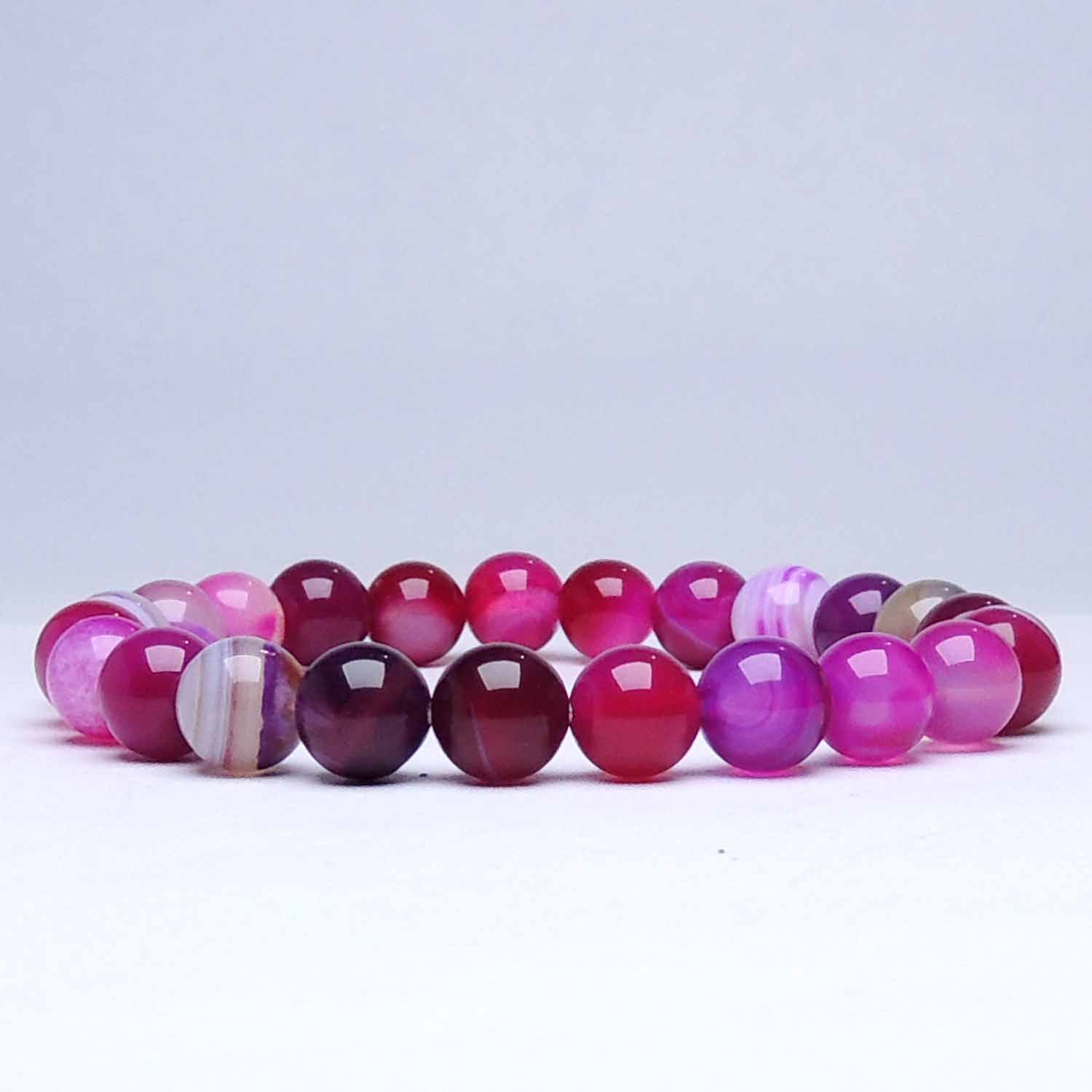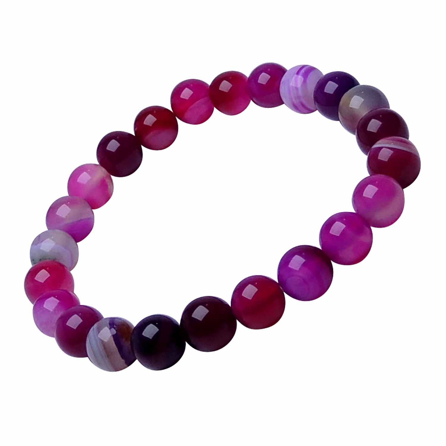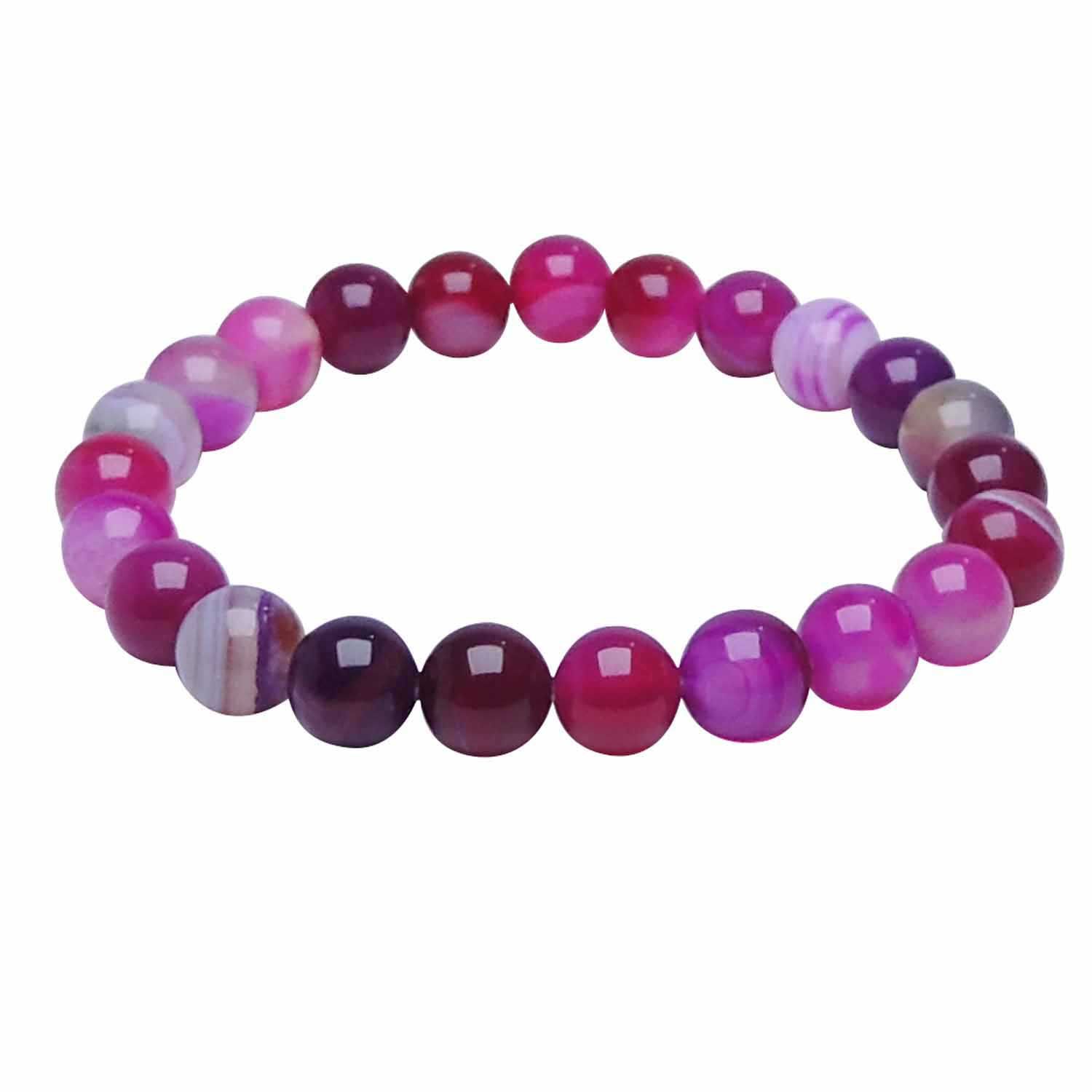 Avika Natural Treated Pink Chalcedony 8 mm Bead Stone Bracelet Color: Pink, For Unisex is for Love shields against negative outside influences that may lead to nightmare dreams. This stone opens a channel for better communication and helps verbalize our feelings the proper way. It increases life energy and promotes emotional balance, vitality, and fortitude. It makes us generous, kind, and friendly, always ready to perform good deeds.