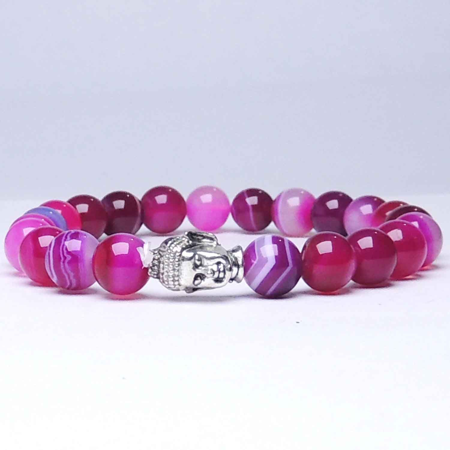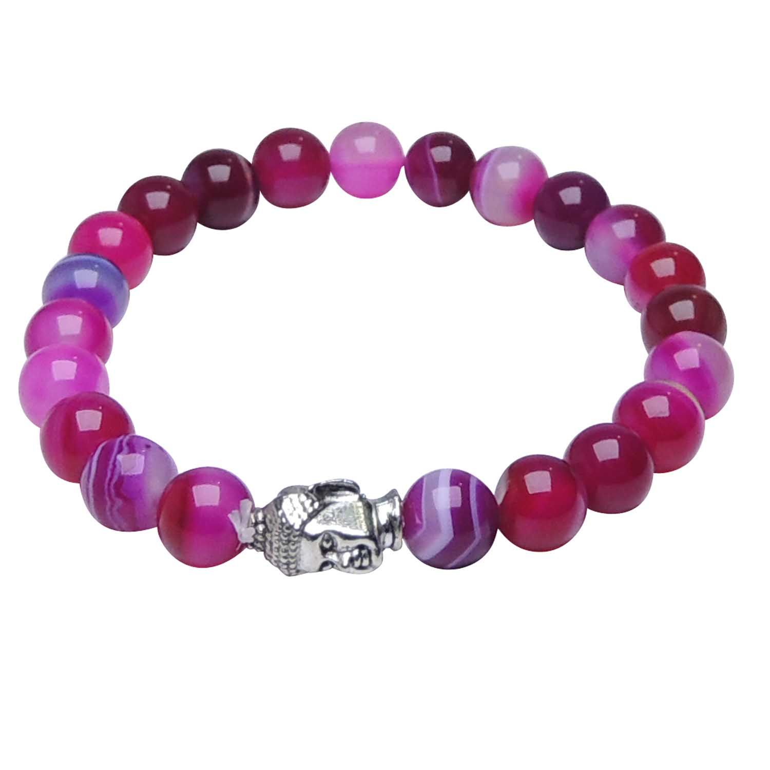 Avika Natural Treated Pink Chalcedony 8 mm Bead Stone Buddha Bracelet Color: Pink, For Unisex is for Love shields against negative outside influences that may lead to nightmare dreams. This stone opens a channel for better communication and helps verbalize our feelings the proper way. It increases life energy and promotes emotional balance, vitality, and fortitude.