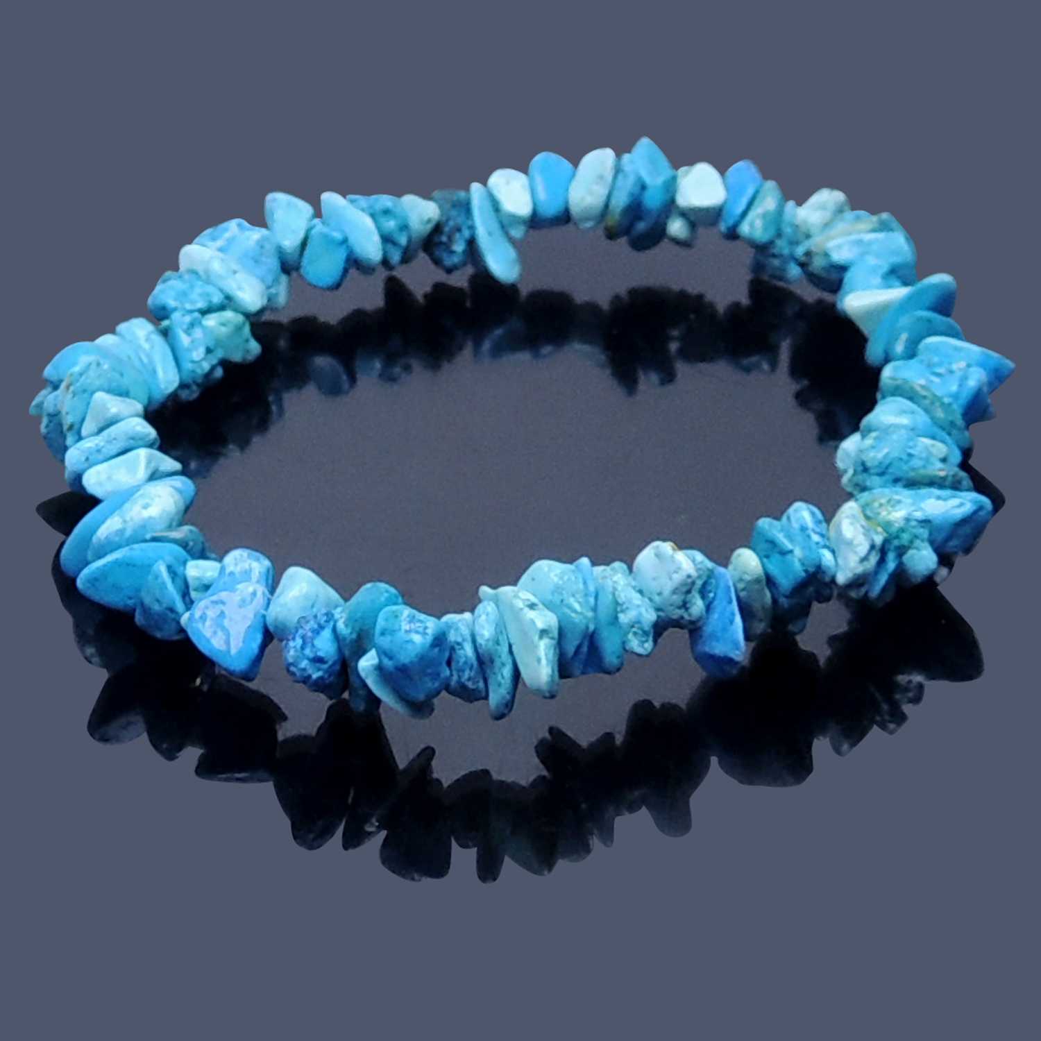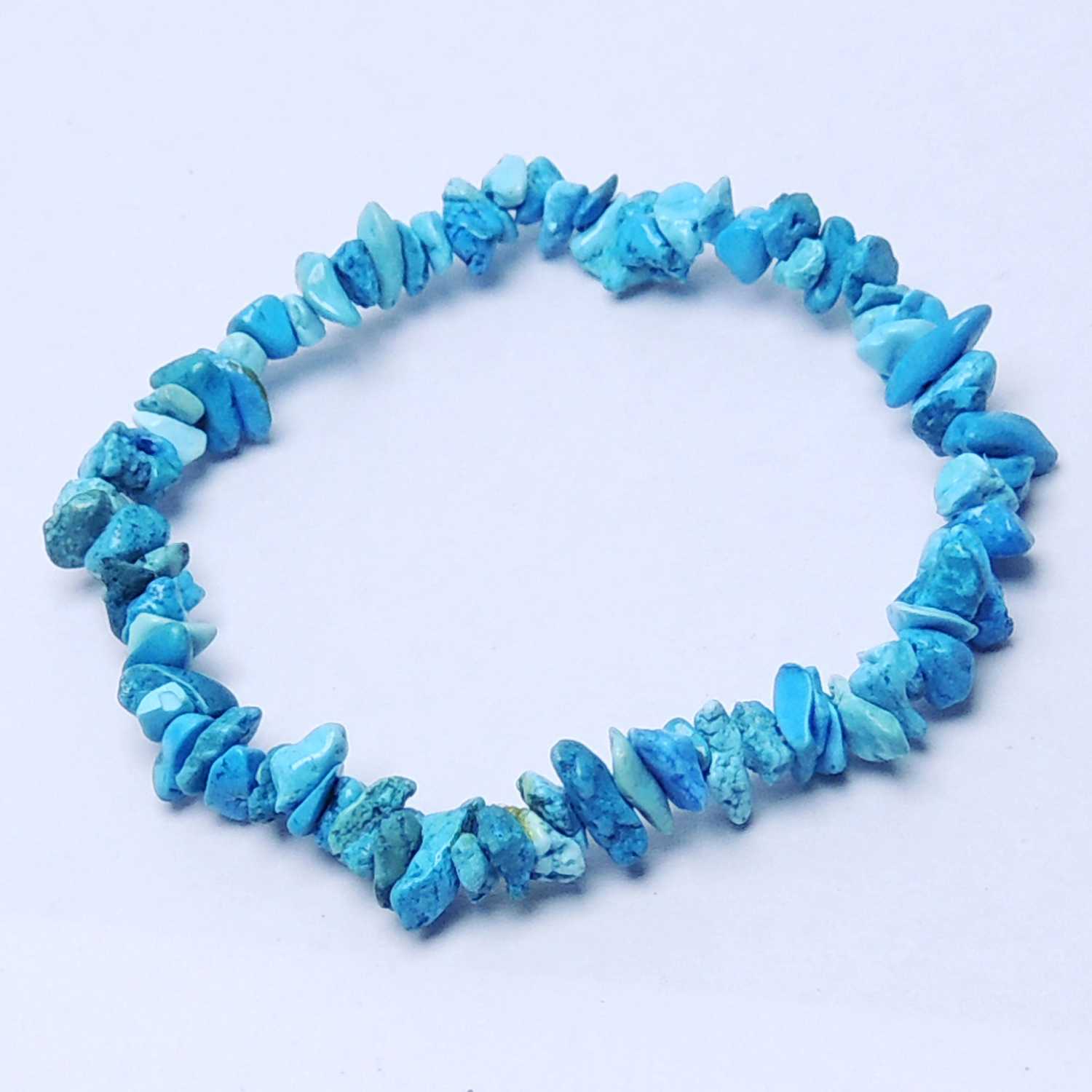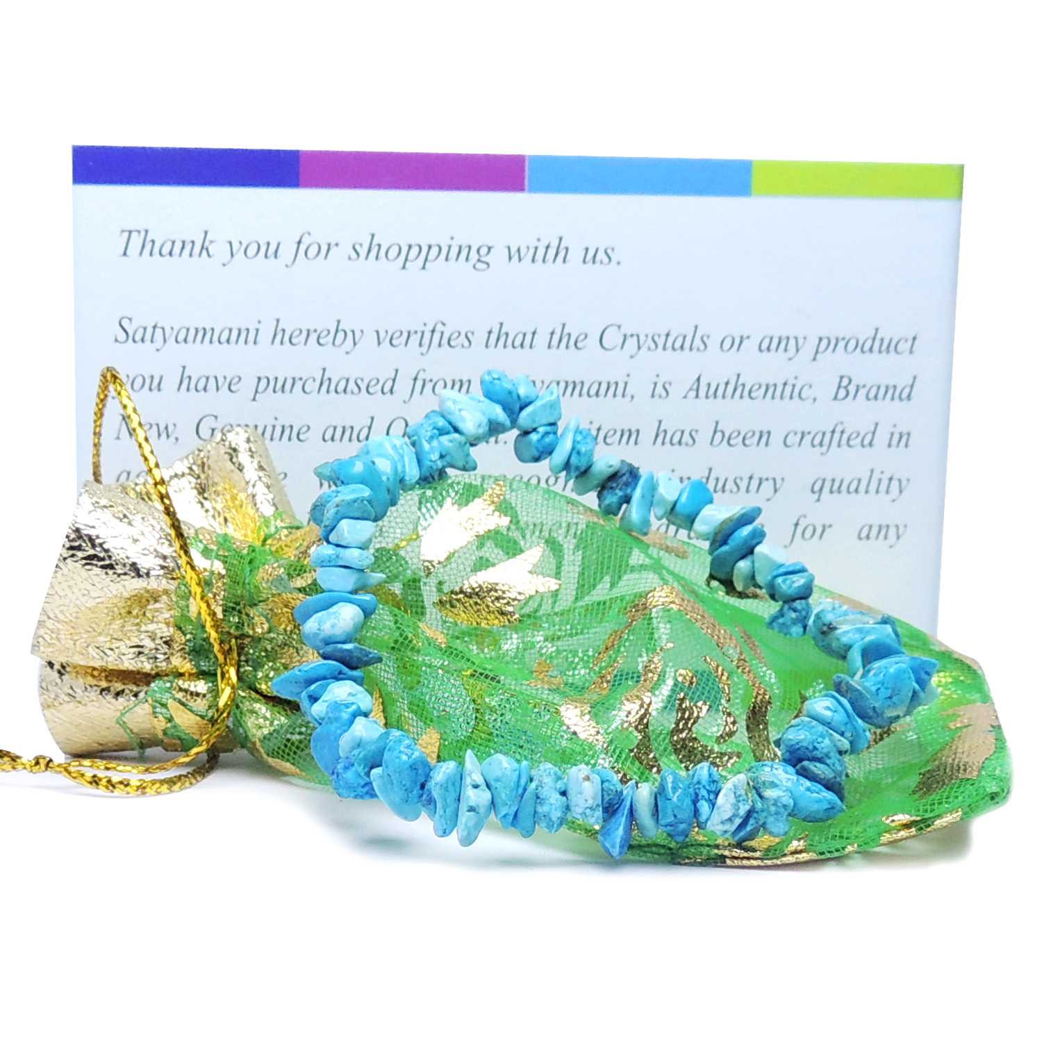 Avika Natural Turquoise Gemstone Chips Bracelet (Pack of 1Pc) they speak out what they feel right, without considering how others will react such statements. Turquoise Gemstone is the symbol of spirituality. It also brings peace to its wearer. It neutralizes over acidity, Alleviates rheumatism, gout, stomach problems and viral infections. Turquoise carries great wisdom of basic truth within it. It is one of the oldest stones known. This is a stone that a person must learn to attune to instead of the stone attuning to the person. It is important that the owner of a Turquoise give it the proper attention. It is best known for its properties such as neutralizing acidity, alleviates rheumatism, gout, stomach problems, viral infections, Increases growth, muscular strength, Alleviates pain, and relaxes cramps, Contains anti-inflammatory and detoxifying effects. (Rest of the details will send you along with the product) Note: these are natural stones so there may be the difference in color and in drawing of the stone as per their occurrence in the nature. The stones have grains in them which are due to their crystal structure. These are natural stones so they are not completely finished some cracks and holes are there due to the variation of hardness in stones. You will get 100% similar product as per the availability in the stock.
