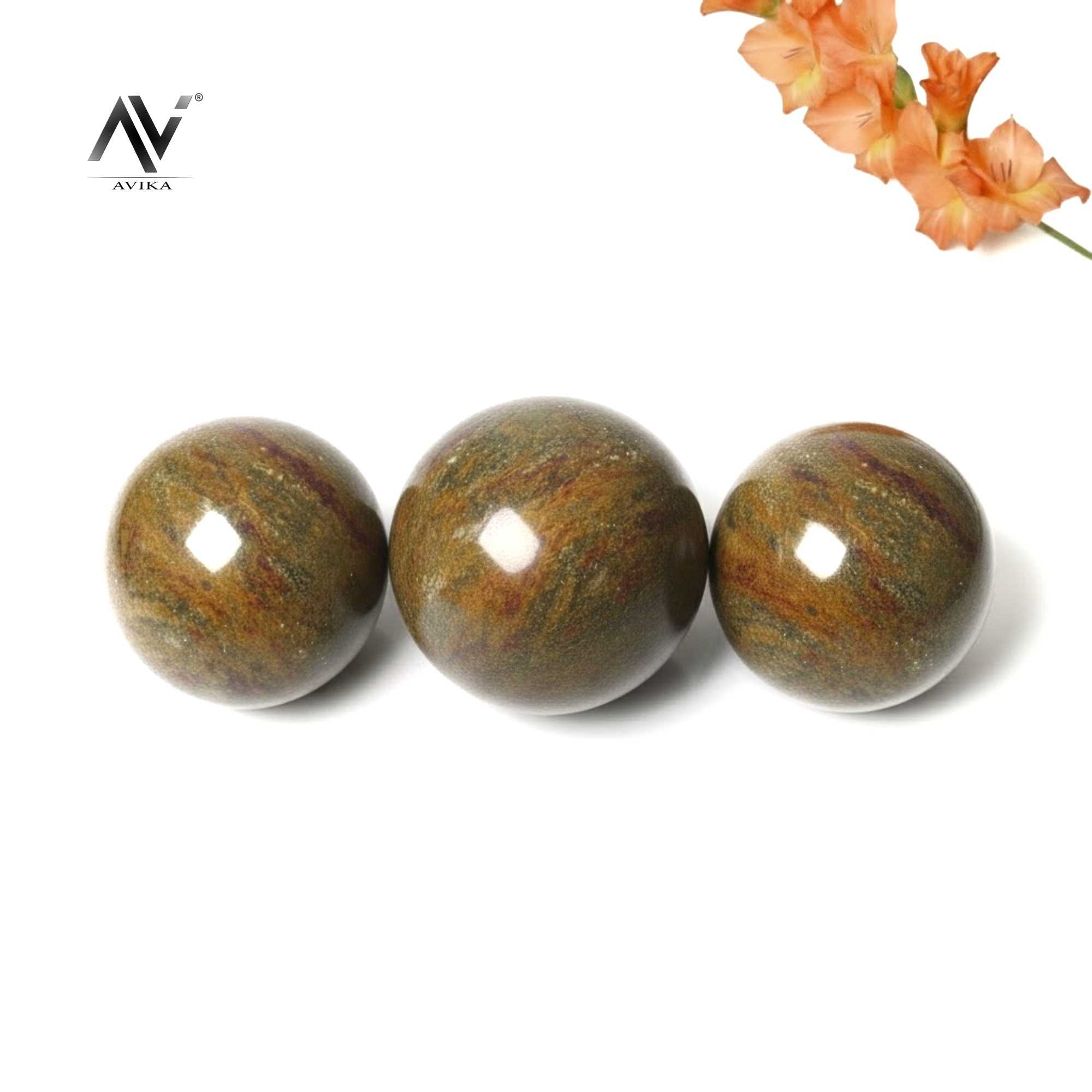 Avika Natural Yellow Jasper Gemstone Sphere/Balls sustains and supports during times of stress. Jasper is one of the oldest known gemstones. It is mentioned in the Bible several times. Jasper is a strong securing gemstone. It is a stability gemstone and is a powerful protection against things that are not good for you and it eases emotional stresses