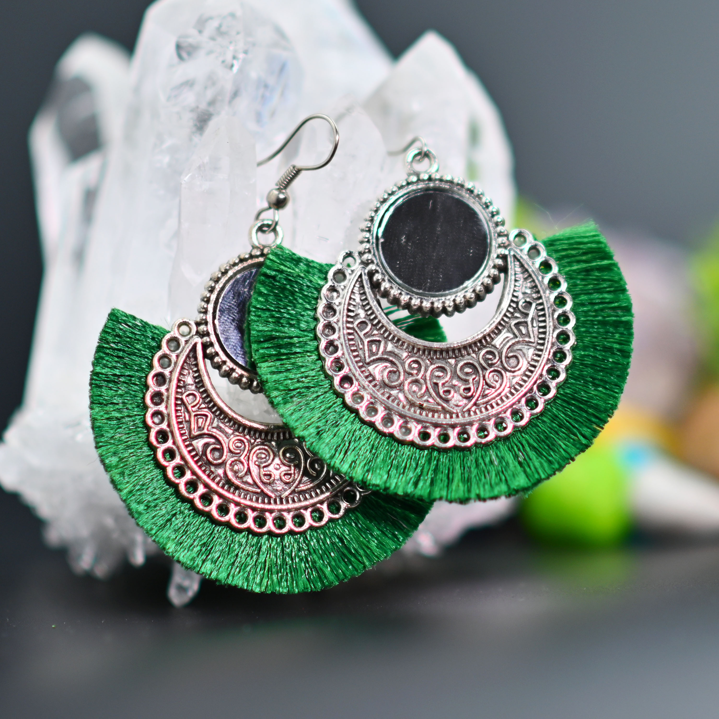 Avika Oxidized Earring with Mirror & Green Thread Party Wear Naughty Black & White Panda Cartoon Character Friend Soft Toy Love Fun Play Showpiece & beautiful handcrafted artificial jewelry. This combo is really worth for money and will sure get you love and smile in return of.