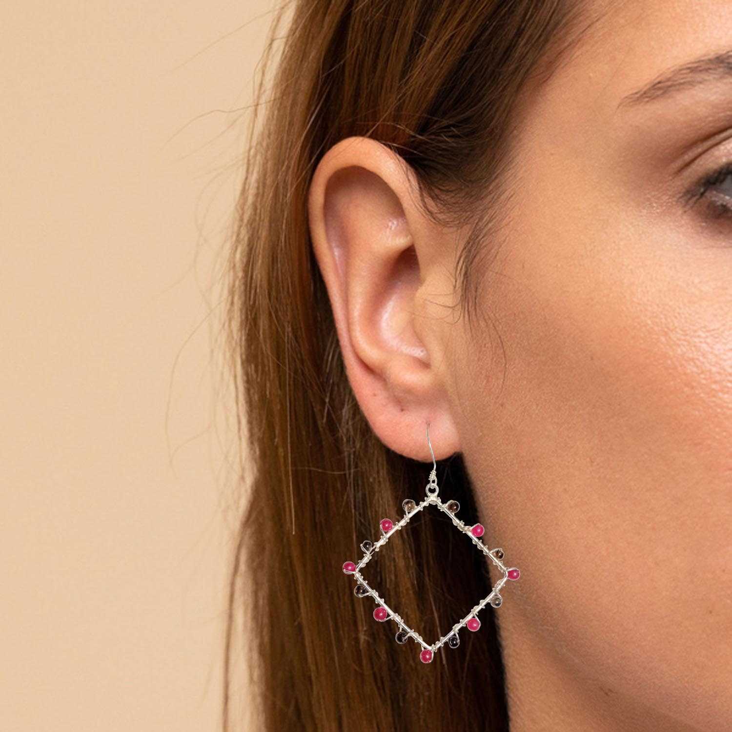 Avika Pink Tourmaline & Smokey quartz Earrings where pink tourmaline is used to help heal your emotions, and will assist you to
